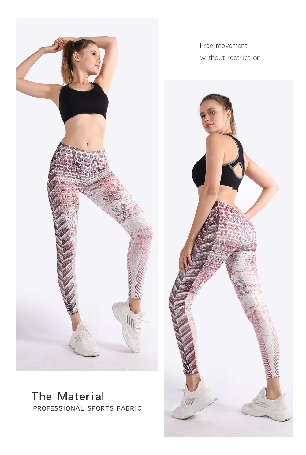Леггинсы с принтом мандала, мята, высокая эластичность, леггинсы для фитнеса с рисунком