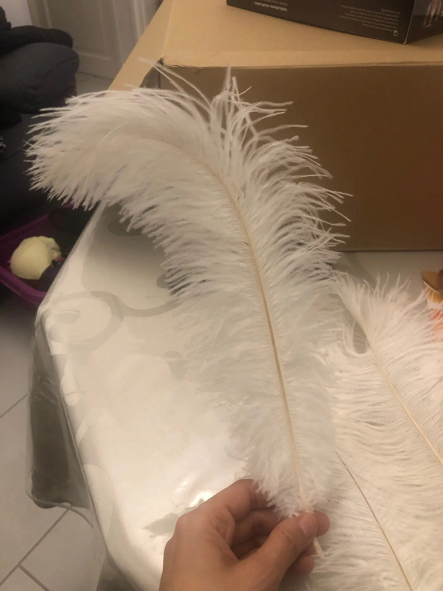 перья не белые, а с желтизной. продавец отправил их в сложенном виде, из-за чего перья пришли помятые