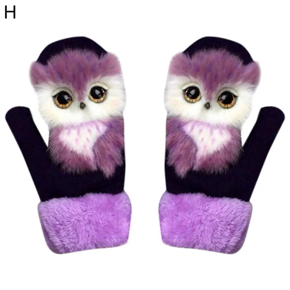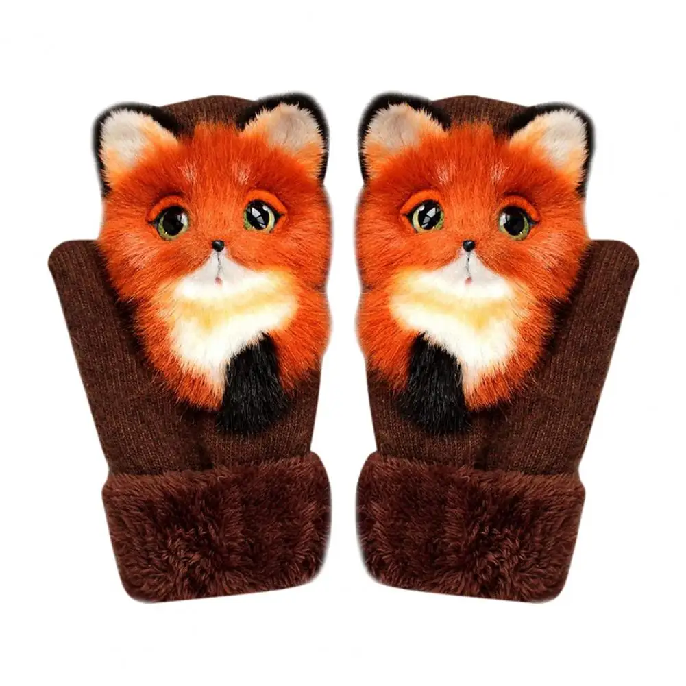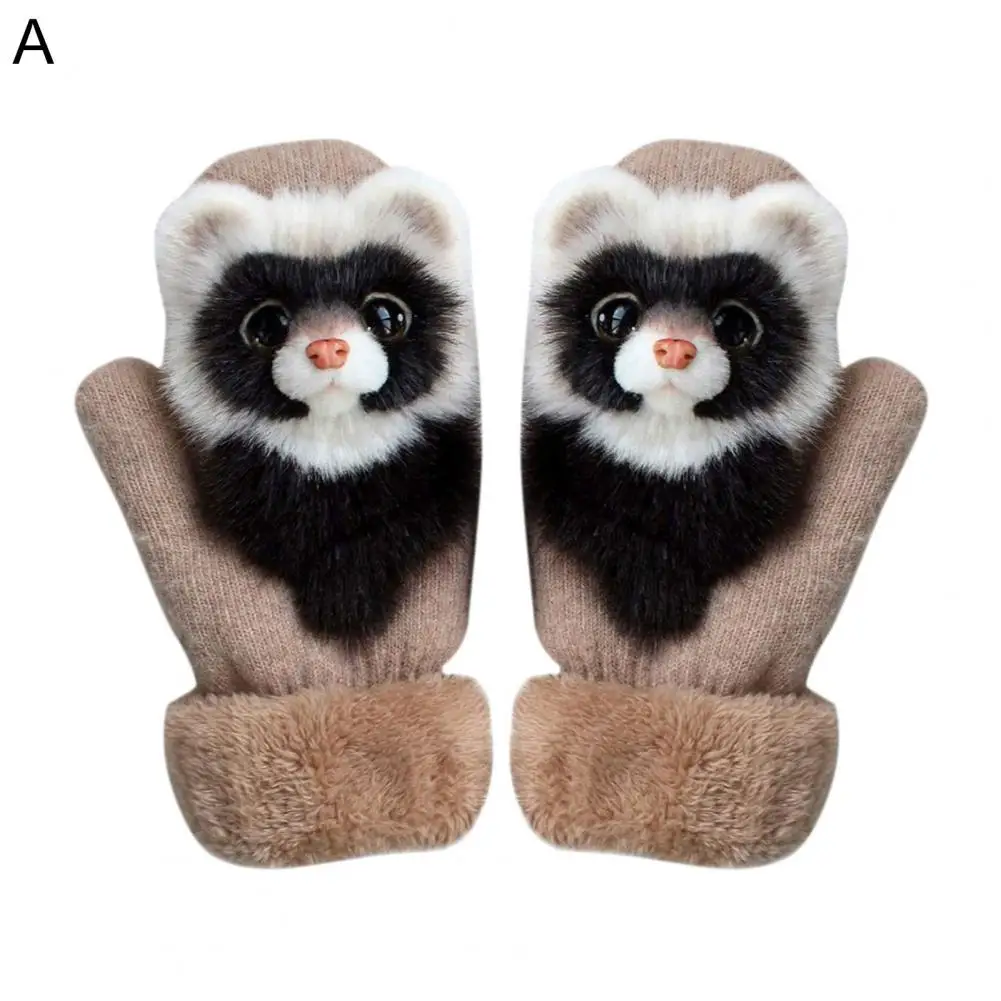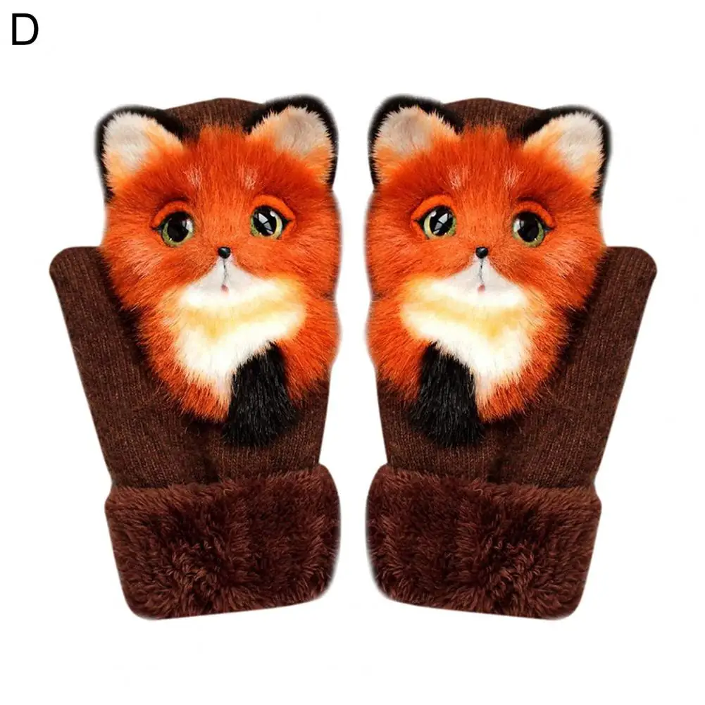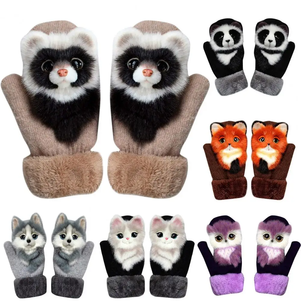 Милые теплые зимние меховые Плюшевые Вязаные перчатки Guantes перчатки с животным узором плотные Мультяшные перчатки с имитацией животных варежки с пальцами