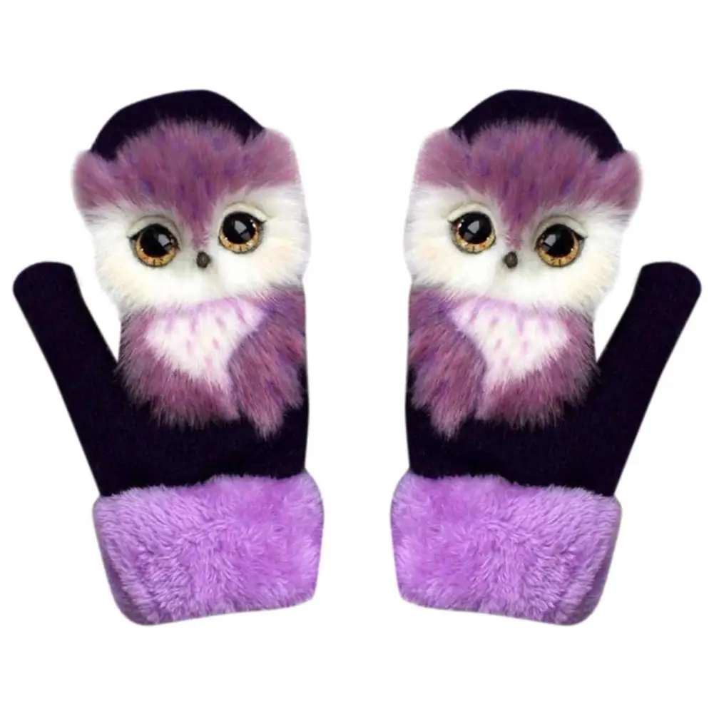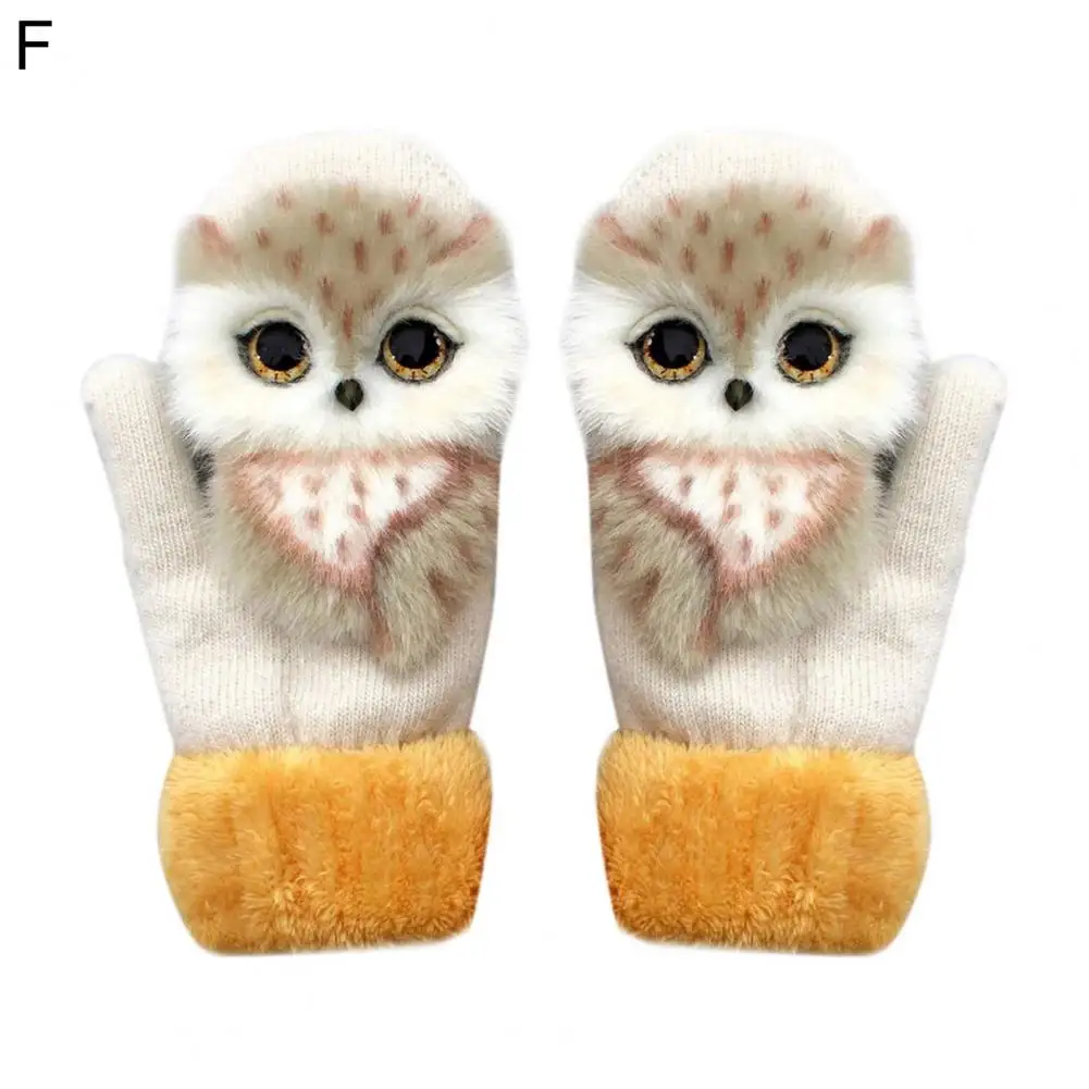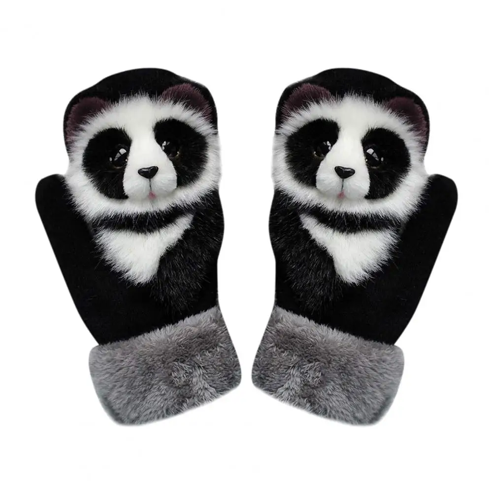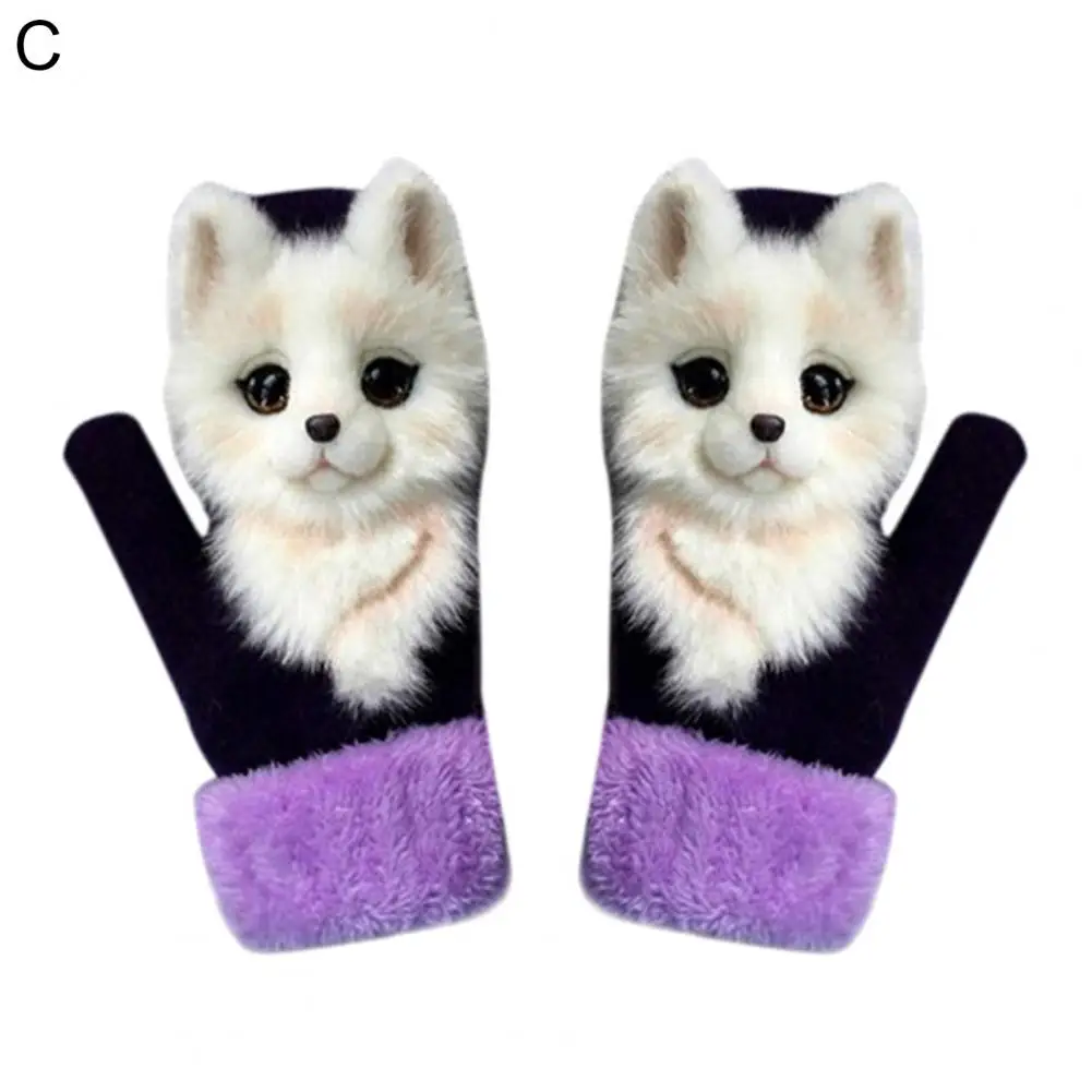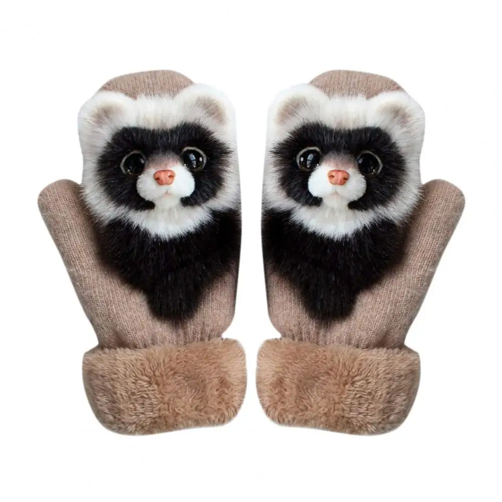 Милые теплые зимние меховые Плюшевые Вязаные перчатки Guantes перчатки с животным узором плотные Мультяшные перчатки с имитацией животных варежки с пальцами