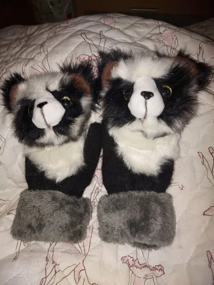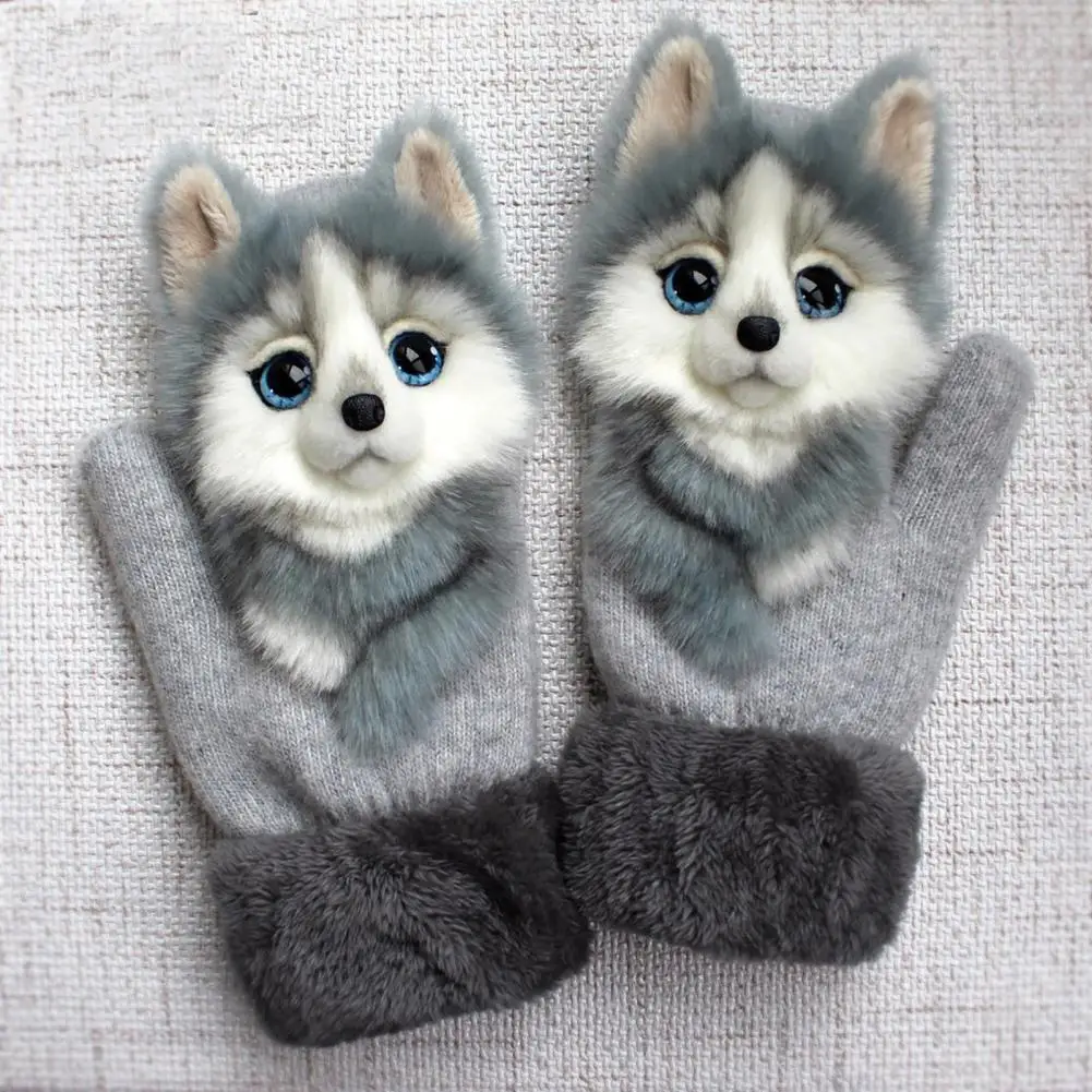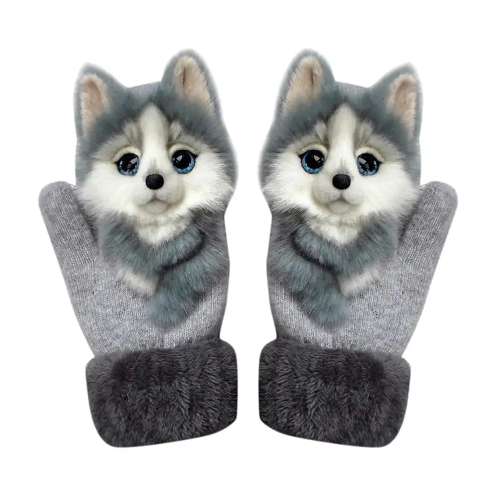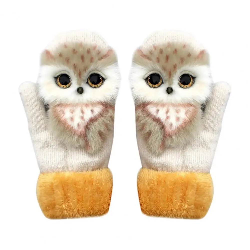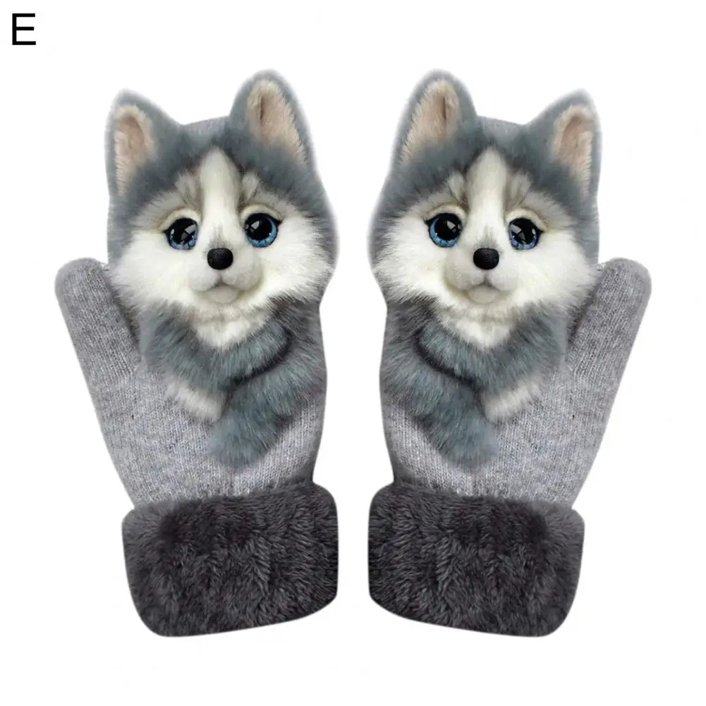 Милые теплые зимние меховые Плюшевые Вязаные перчатки Guantes перчатки с животным узором плотные Мультяшные перчатки с имитацией животных варежки с пальцами