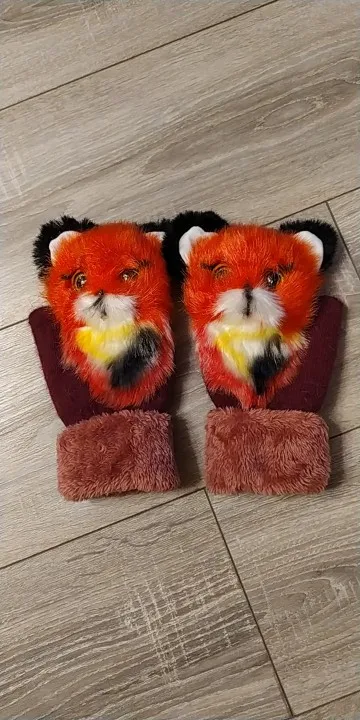 Милые теплые зимние уплотненные перчатки с рисунками животных из мультфильмов