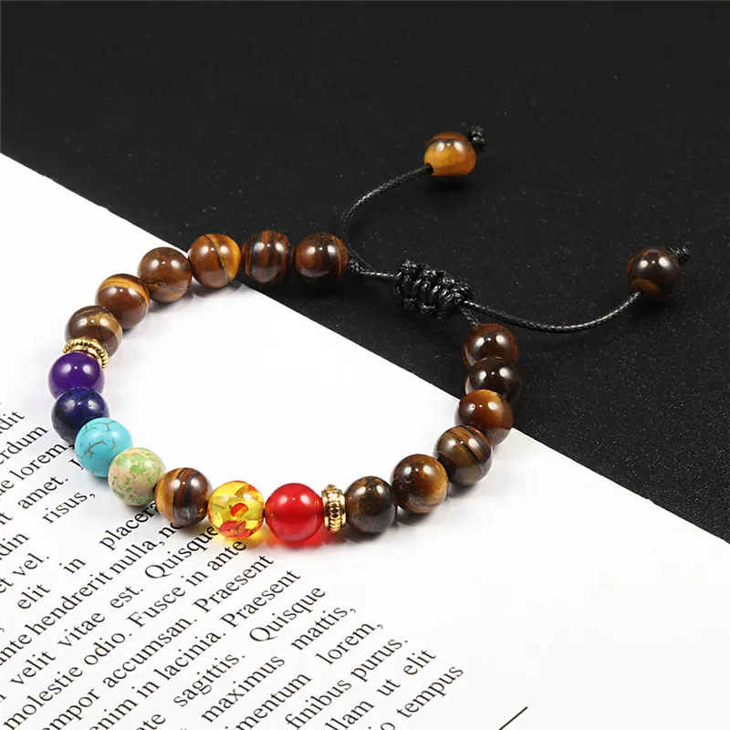 Браслеты с бусинами для мужчин и женщин, изящные чакры с тигровым глазом и камнями, регулируемые ювелирные украшения для молитвы, Будды, 7 чакр