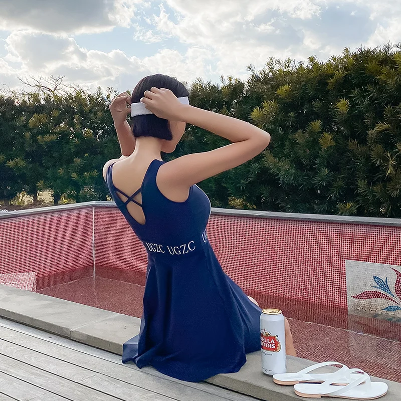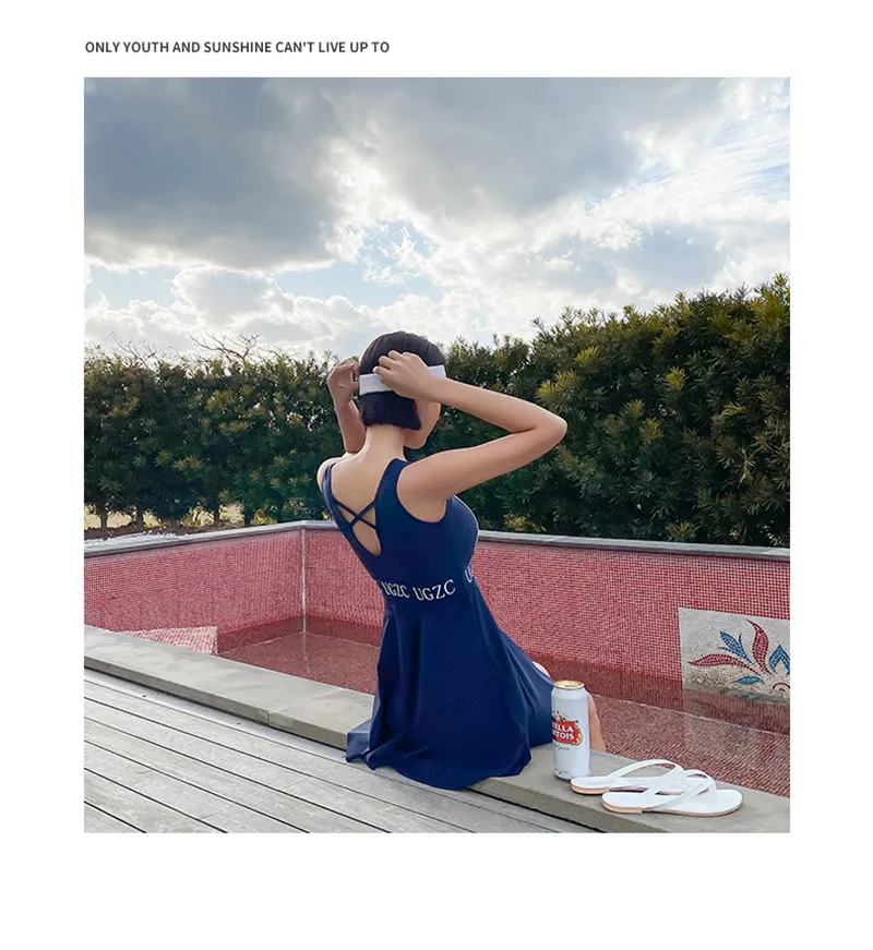 Купальник женский слитный с юбкой, корейский спортивный бюстгальтер...