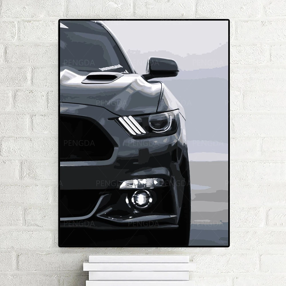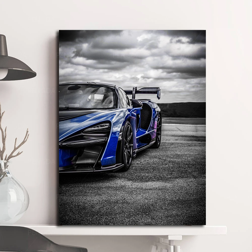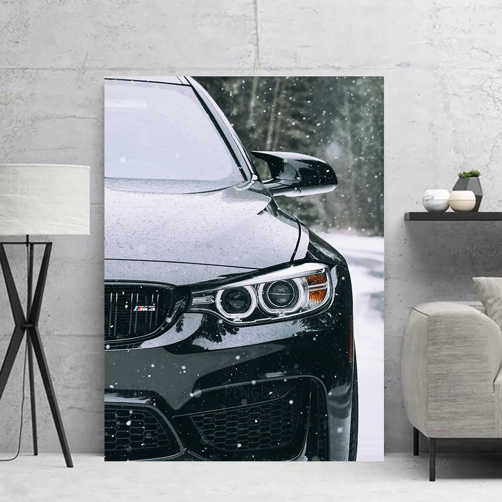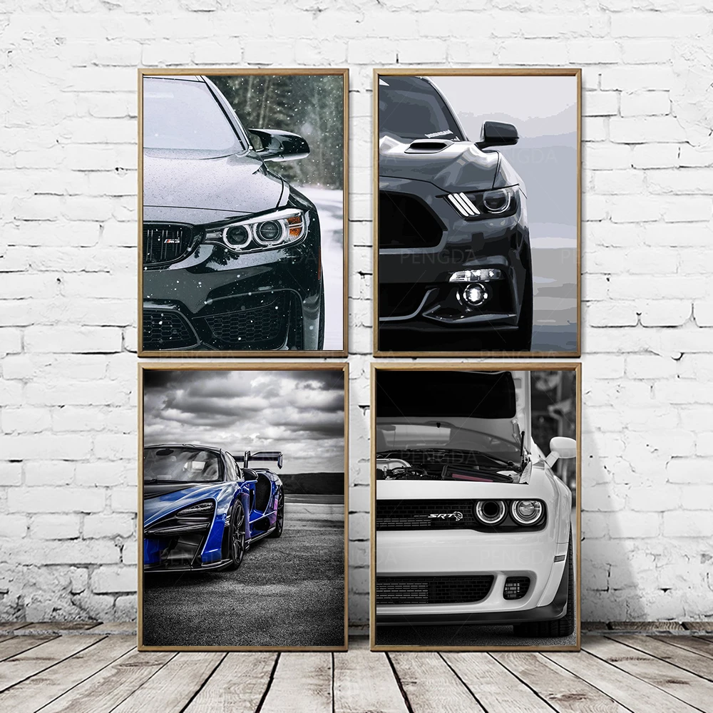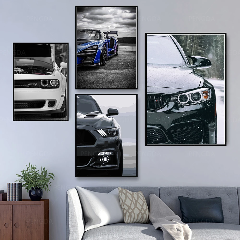 Картина с принтами, модульные картины с автомобилем белого и черного цвета, настенное художественное украшение для дома, современный постер с прикроватным столиком