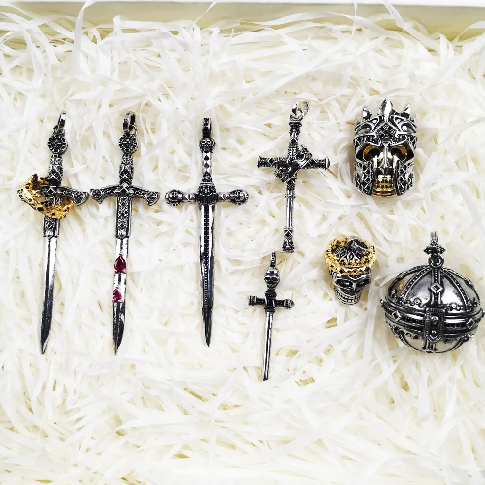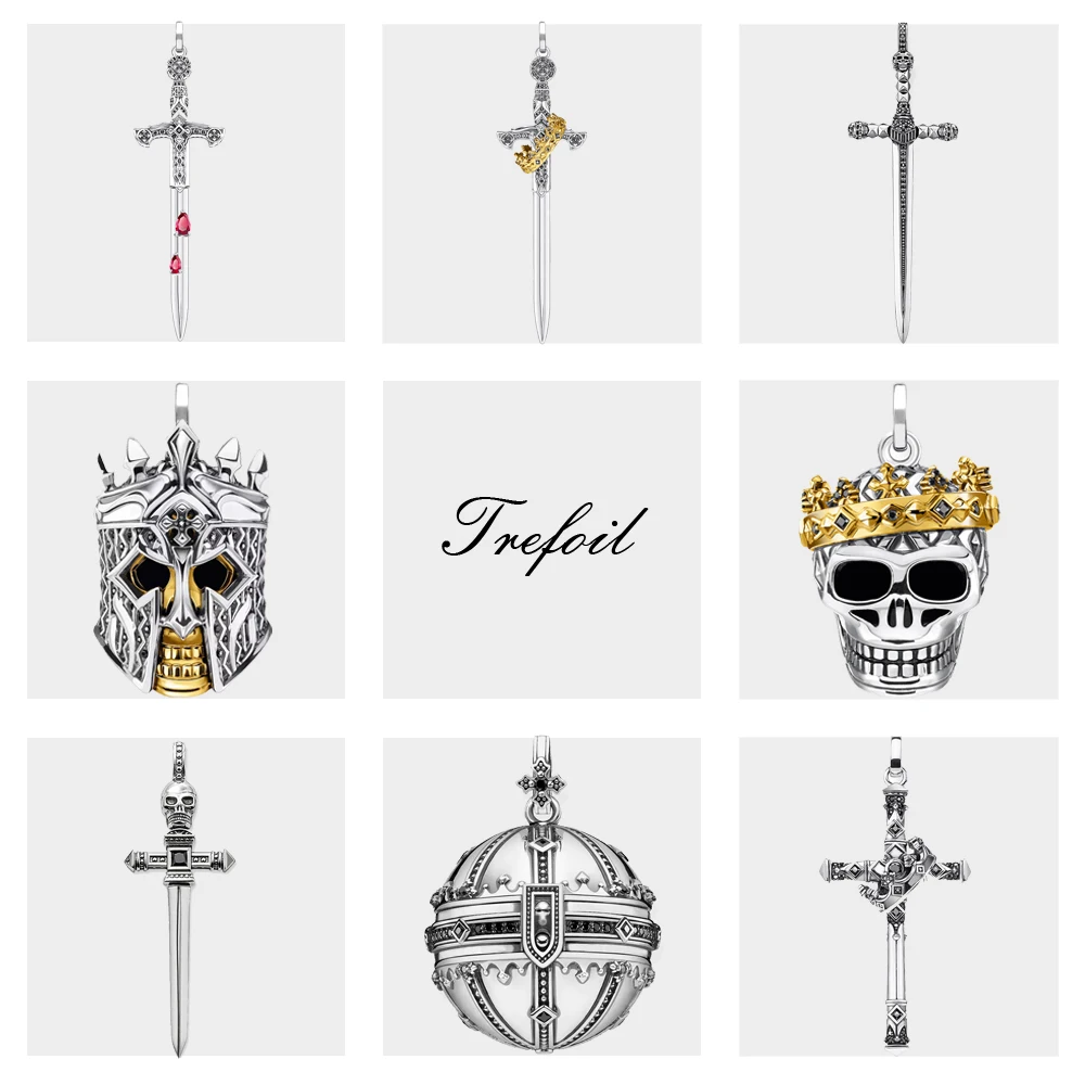 Ожерелье из серебра 925 пробы, подвеска в виде меча пробы, с кровяной короной, черепом, рыцарем, 2021