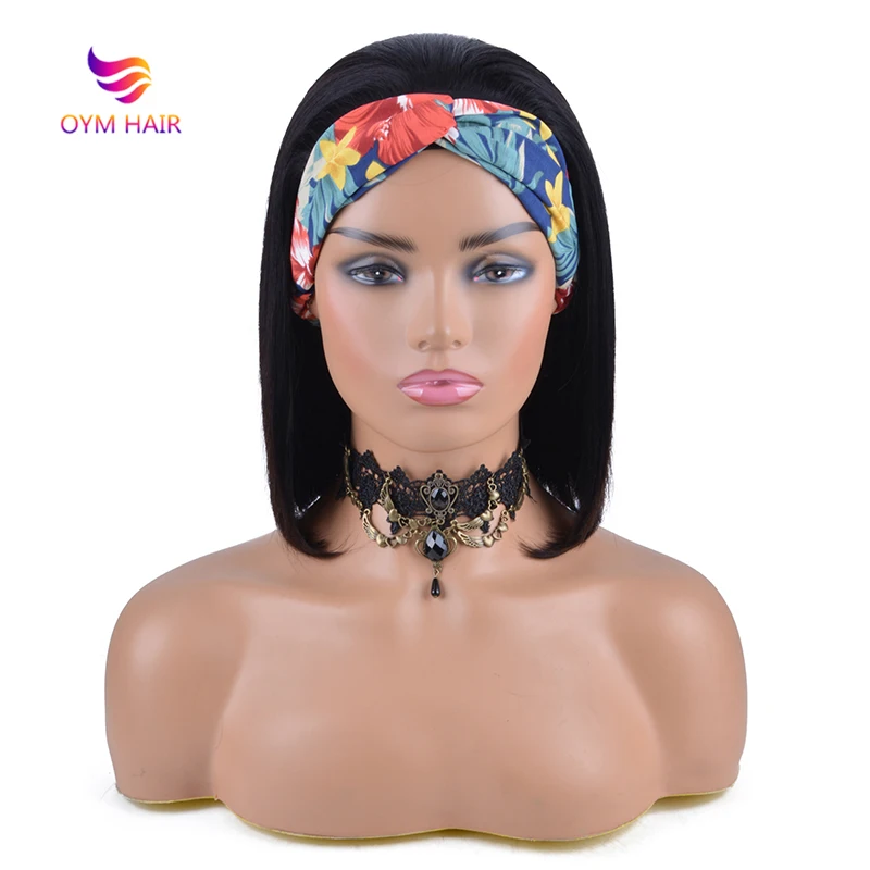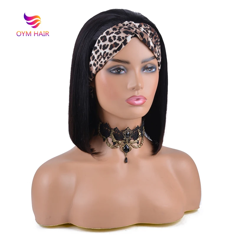 Парики из парик с головной повязкой натуральных прямых волос для чернокожих женщин, Короткие