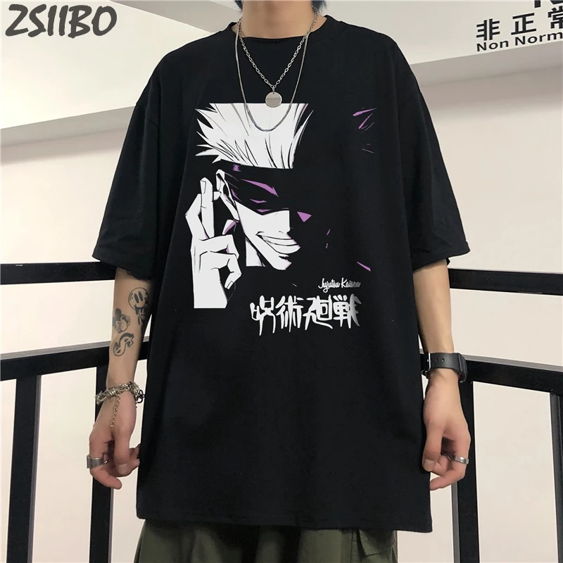 Футболка джудзюцу кайсен годзё Сатору Мужская, крутая тенниска в стиле унисекс с короткими рукавами, Забавный хлопковый топ с аниме принтом граффити, на лето
