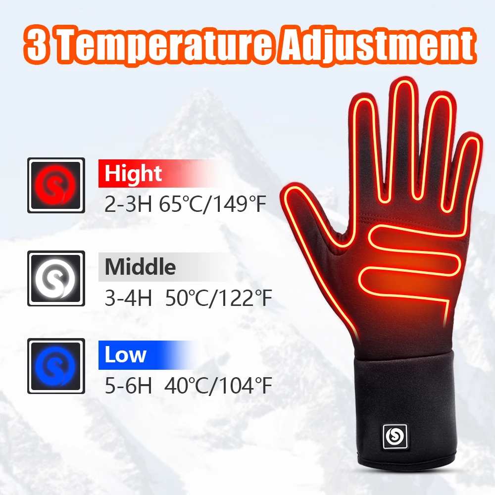 Инструкции пользователя:Извлеките аккумуляторы из перчаток во время зарядки.Первый раз заряжайте аккумуляторы в течение 3 часов при комнатной температуре.Красный светильник загорается во время зарядки.Зеленый светильник загорается при полной зарядке.Аккуратно Подключите провод к аккумуляторам и зафиксируйте секцию.Нажмите кнопку питания один раз для включения с высоким нагревом и нажмите еще раз для регулировки режимов нагрева.