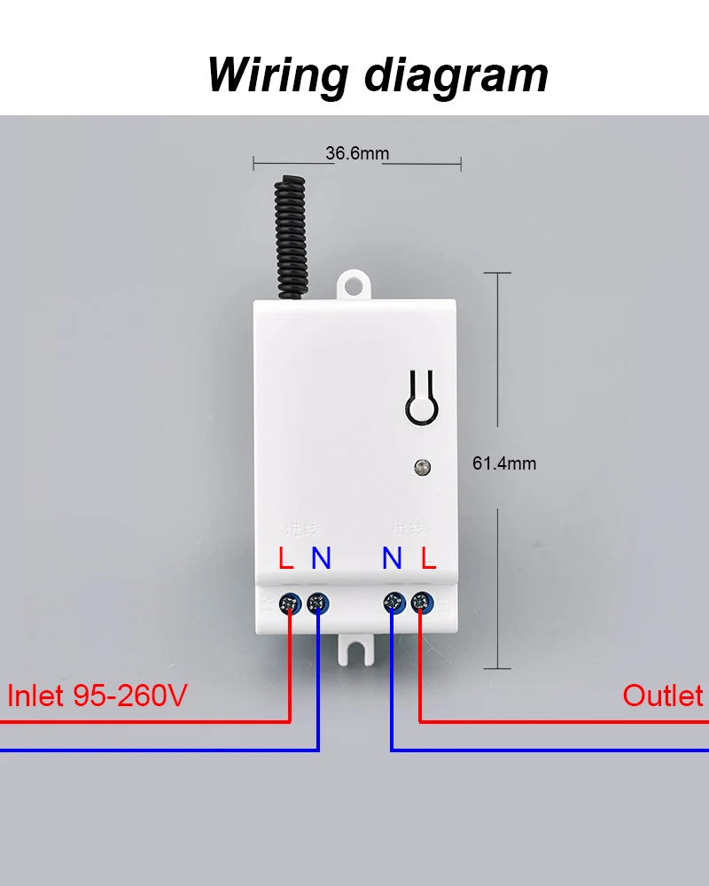 Номинальное напряжение: 95-260 ВСрок службы реле: время открытия/закрытия ≥ 400000Резистивная нагрузка: ≤ 1500 ВтПотребляемая мощность в режиме ожидания: ≤ 0,3 ВтИндуктивная нагрузка: ≤ 1200 ВтПотребляемая Рабочая мощность: ≤ 0,8 ВтЕмкостная нагрузка: ≤ 1200 ВтРабочая температура: -20C ~ + 70 ℃℃Рабочая влажность: ≤ 80%Повышение рабочей температуры: 15 ℃Инструкция по эксплуатации1. Настройка состояния включения и выключенияНажмите и удерживайте кнопку приемника в течение 3 секунд, индикатор мигнет один раз, отпустите кнопку, нажмите на настенный выключатель один раз, и индикатор Приемника мигнет один раз, что указывает на успешное обучение.2. Установите состояние on (только для включения светильник)Нажмите и удерживайте кнопку приемника в течение 5 секунд, индикатор мигнет дважды, отпустите кнопку, нажмите на настенный выключатель один раз, и индикатор Приемника мигнет один раз, что указывает на успешное обучение.3. Установите выключенное состояние (только для выключения света)Нажмите и удерживайте кнопку приемника в течение 7 секунд, индикатор мигнет 3 раза, отпустите кнопку, нажмите на настенный выключатель один раз, и индикатор Приемника мигнет один раз, что указывает на успешное обучение.4. Очистите статус обучения.Нажмите и удерживайте кнопку приемника в течение 10 секунд, индикатор мигнет 4 раза, указывая на то, что все Обучающие пульты дистанционного управления удалены.5. Коротко нажмите кнопку приемника, при каждом нажатии реле включится или выключится.