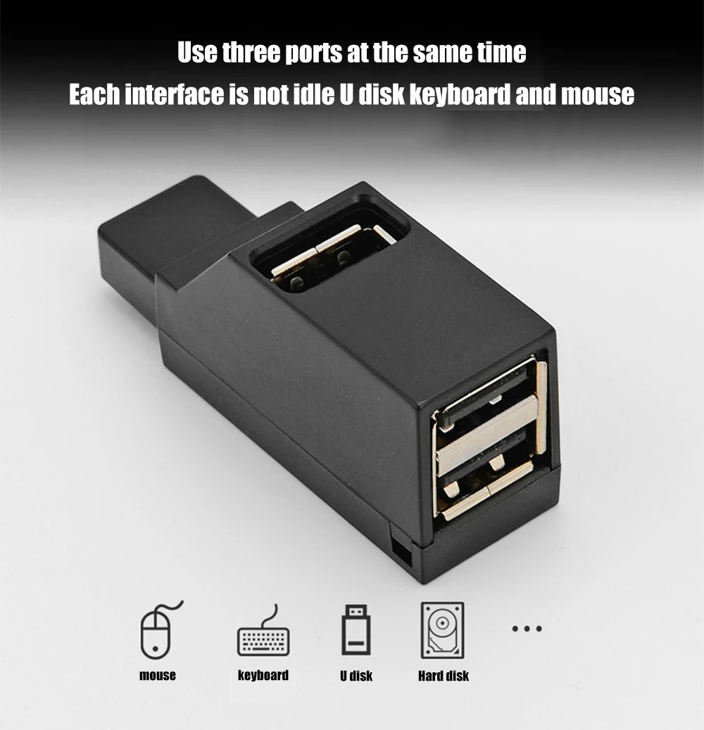 Наименование: 3 в 1 usb-хабПорты: 3 * USB-AМатериал: ABSВес: 23 гСистема поддержки: Windows/Mac OSДлина кабеля: беспроводной