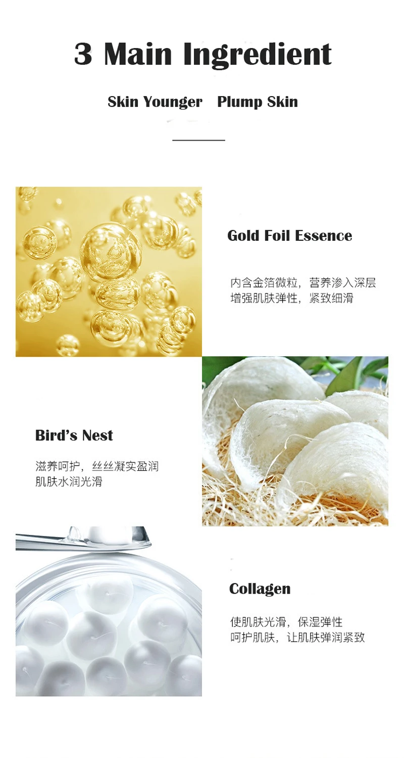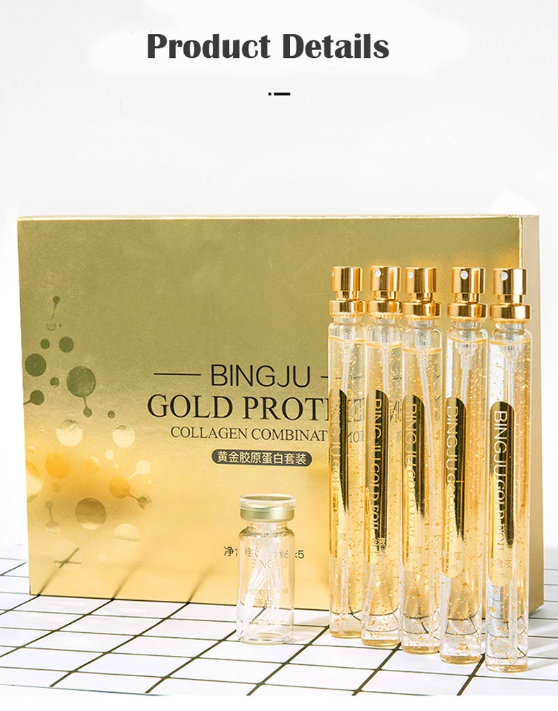 Шесть функций пептида золотого протеина: полная Яблочная мышца, подтягивание линии нижней челюсти, втирание лица желтым газом, разбавление правовых линий, удаление морщин под глазами, исчезновение линий на лбу.