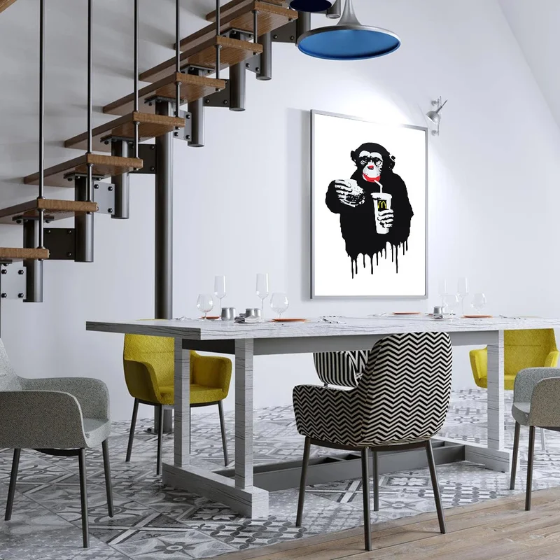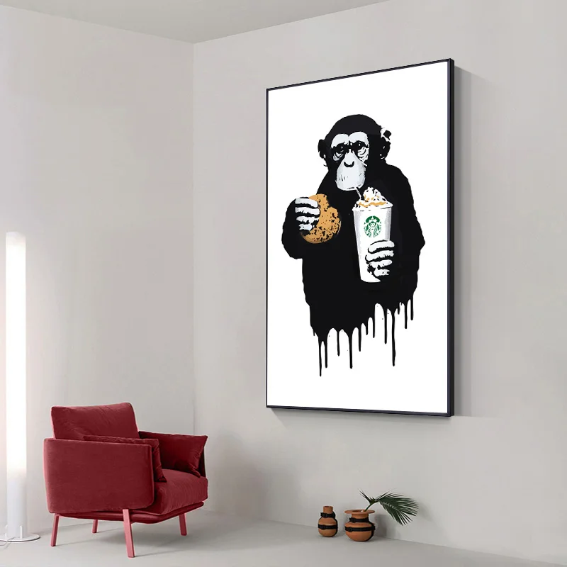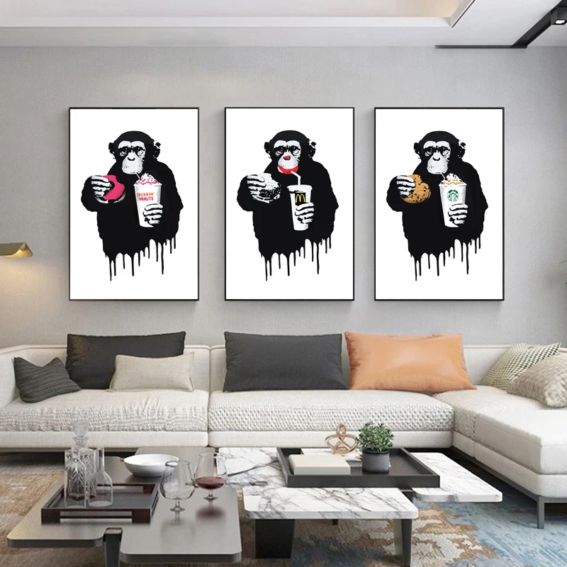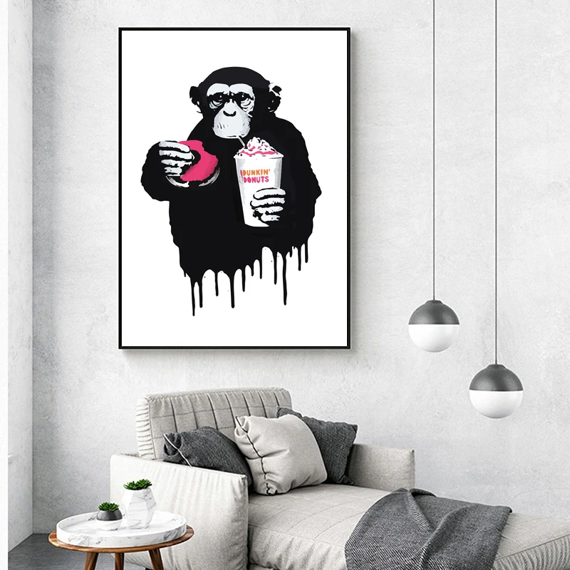 Граффити на холсте Плакаты и принт Бэнкси DJ обезьяна холст настенн...