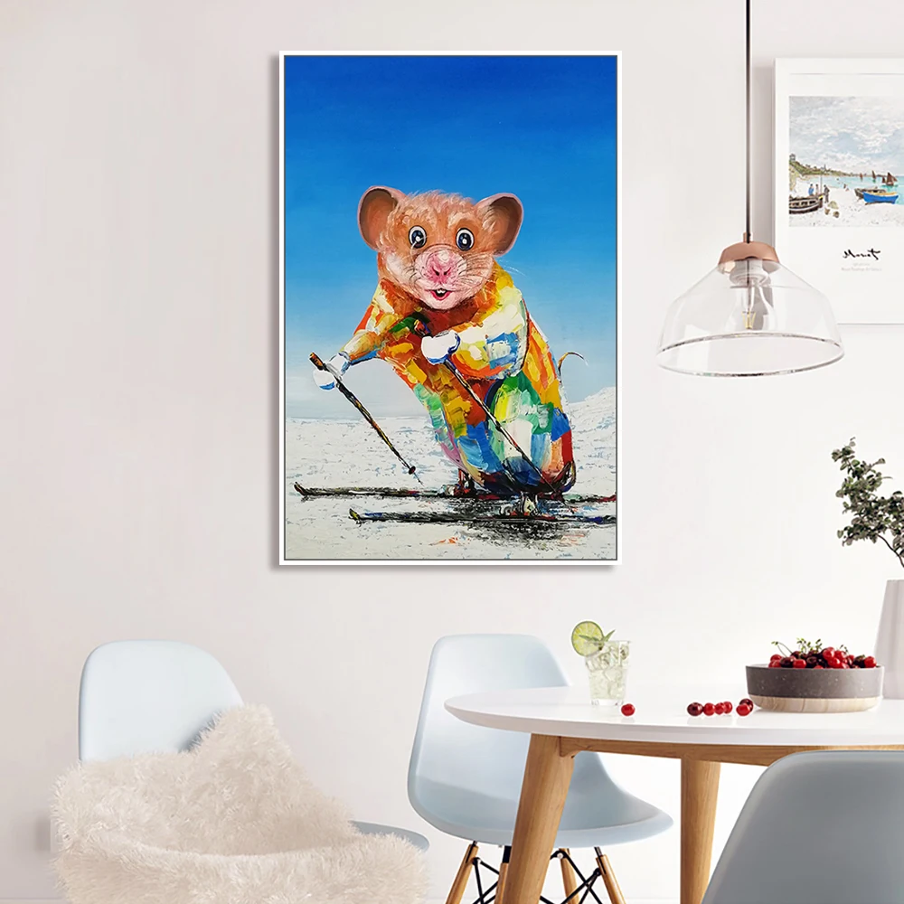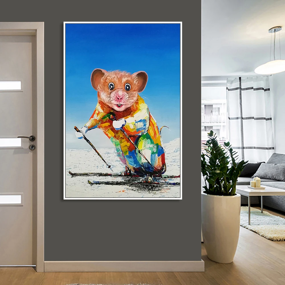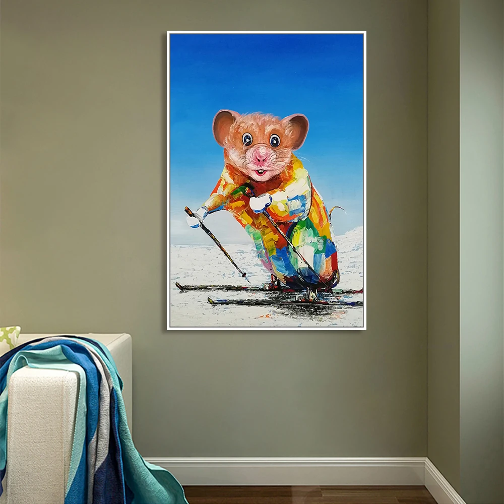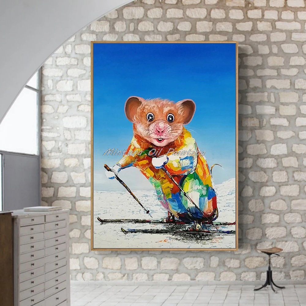 Картина на стену Mintura для гостиной, Масляные картины на холсте, ручная роспись, мышка для катания на лыжах, украшение дома, настенная живопись, без рамки.