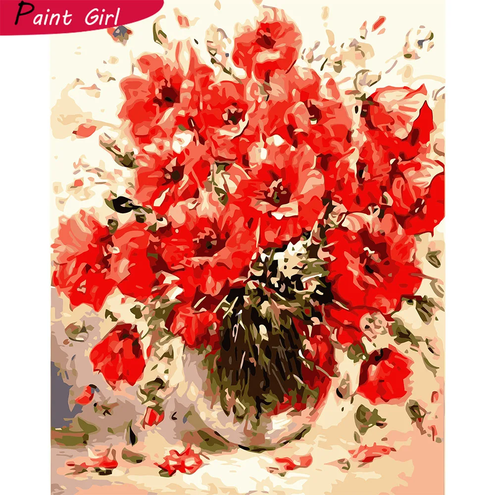 Сделай Сам картины по номерам с изображением Красного цветка Раскраска по номерам степень сложности три звезды VA-1019
