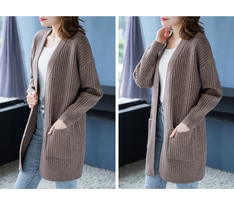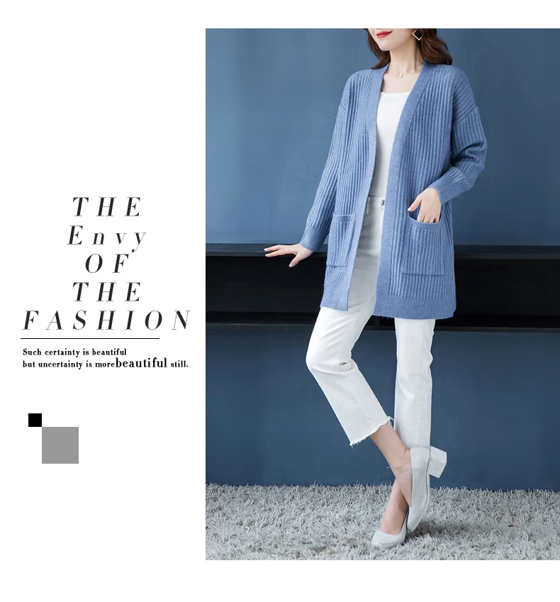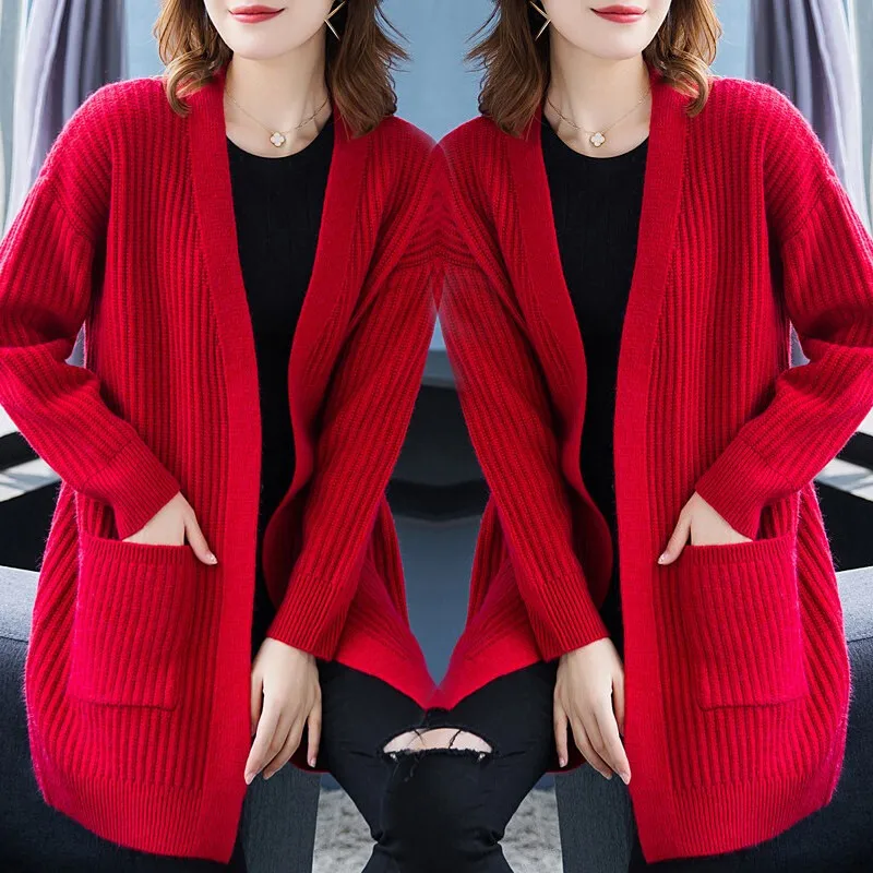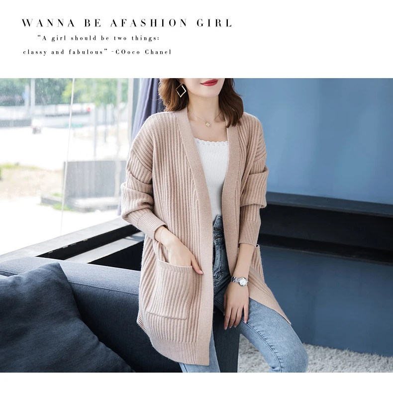 Вязаный женский кардиган, Весенний Новый Однотонный свитер с длинным рукавом, женский жакет, Повседневная Свободная трикотажная одежда, пальто, 2021