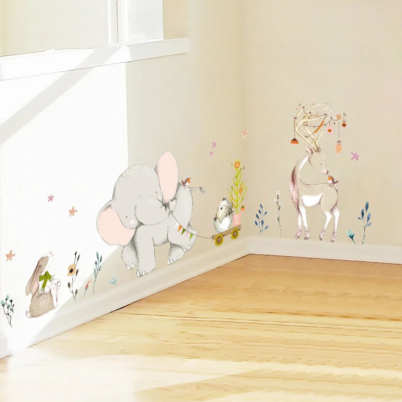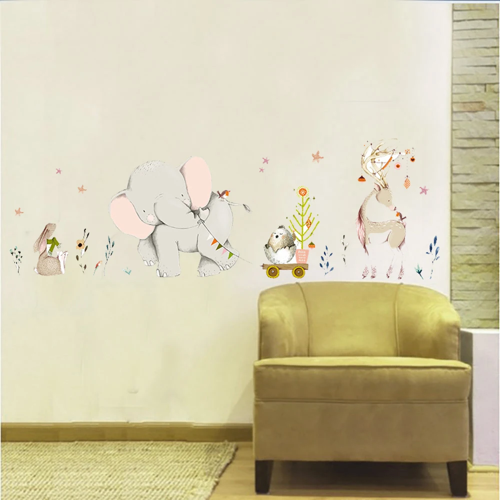 Горячая Распродажа, счастливый ребенок, слон, мультфильм, маленькие животные, декоративные наклейки на стену, фон для детской комнаты, дивана, настенная наклейка, добавленное удовольствие