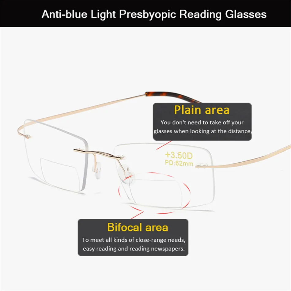 Бифокальные прогрессивные очки для чтения iboode из сплава для мужчин и женщин, очки для дальнозоркости с защитой от синего излучения, с диоптриями + 1,0 1,5