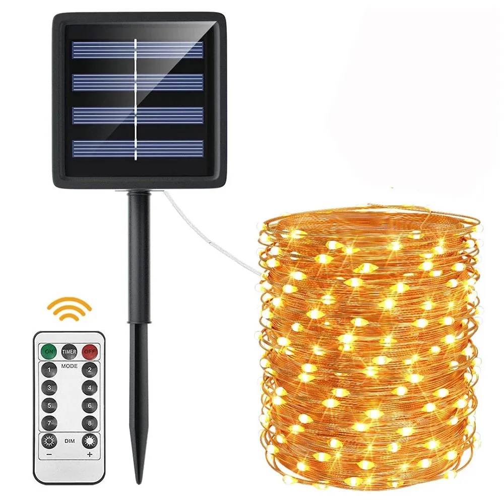 Светодиодная гирлянда на солнечной батарее, медный провод, рождественское освещение на солнечной батарее для дома, сада, патио, двора, свадебной вечеринки, водонепроницаемая, 8 режимов