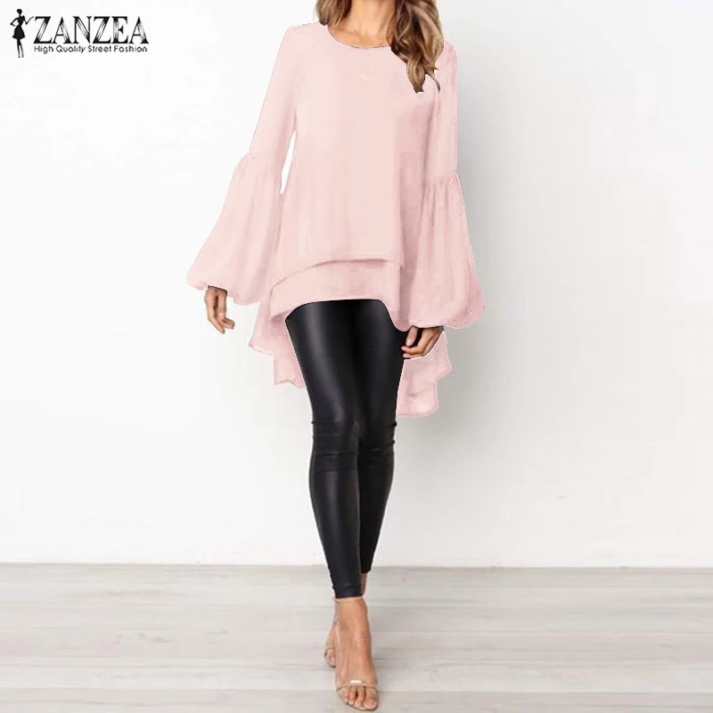 Блузка ZANZEA женская с пышными рукавами, Модный ассиметричный Топ, элегантная многослойная блузка, Повседневная Туника, 2021