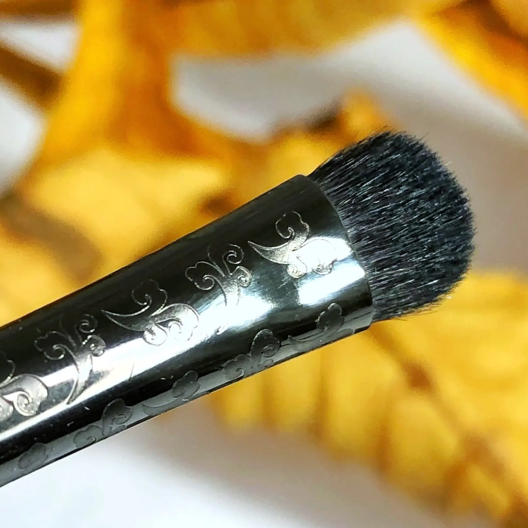 Кисть предназначена для нанесения деликатного макияжа глаз. Изготовлена из резного черного дерева, с натуральным ворсом. Лёгкая, удобная, ворс ровный, плотно набит, не сыпется, хорошо моется. На ручке кисти выбит логотип бренда, украшена гравировкой. Рекомендуется для подводки края глаз .Очень хорошие впечатления от использования кисти! Качество просто супер! Рекомендую!