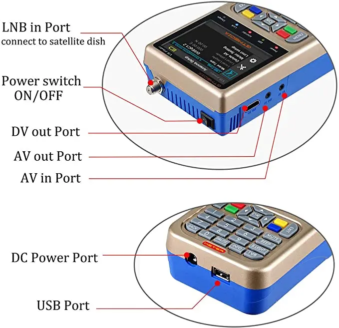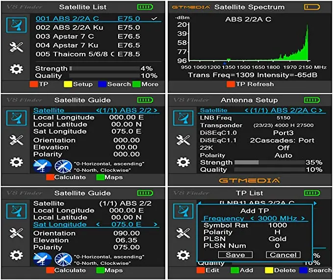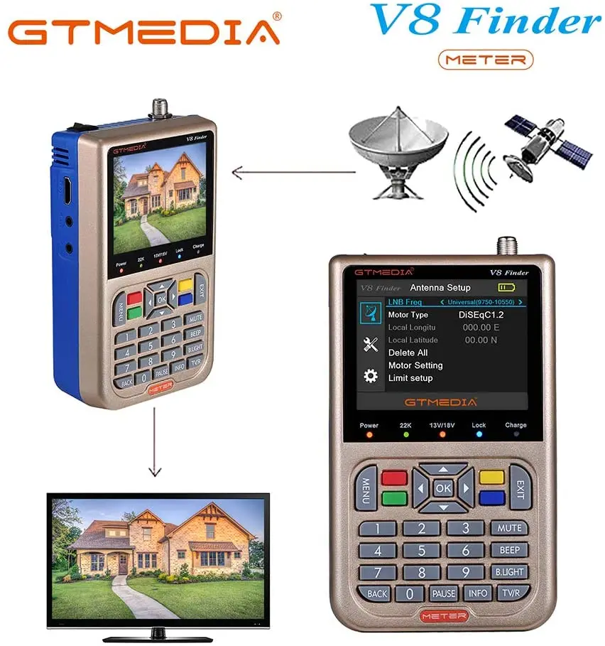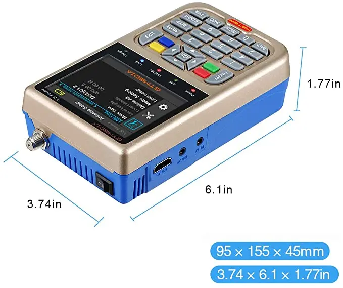 [Системный стандарт DVB-S / S2 / S2X]Со светодиодным экраном 3,5 дюйма, совместим со стандартом системы DVB-S / S2 / S2X, поддерживает выход AV / HDMI. Смотрите спутниковые каналы и список спутниковых каналов в режиме реального времени при отладке спутников.