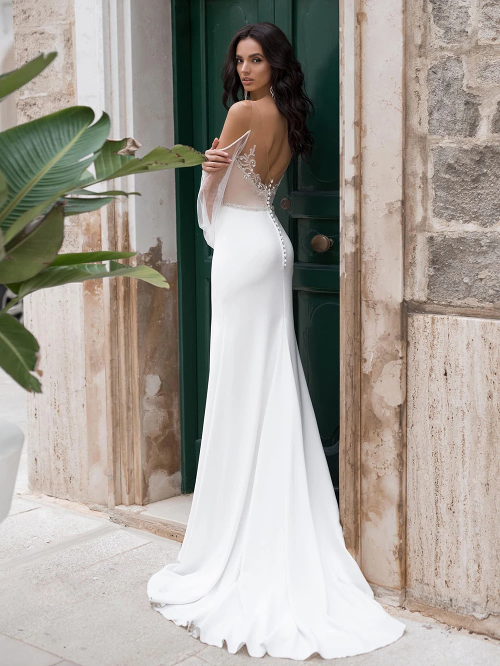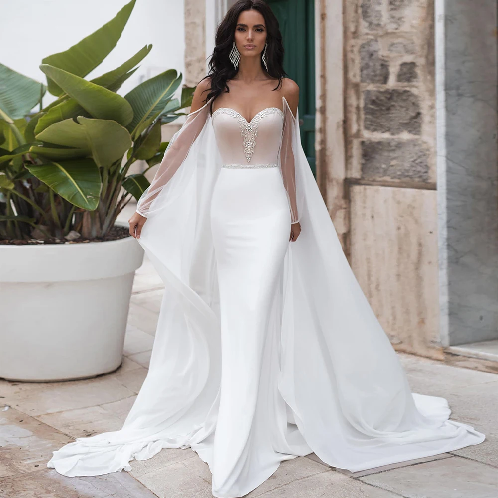 Свадебное платье русалка, со съемной шалью, открытыми плечами и открытой спиной, с аппликацией из бисера, 2021