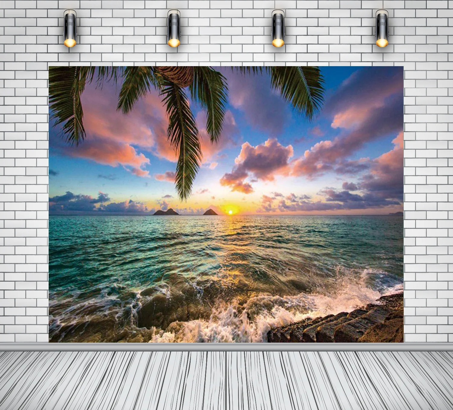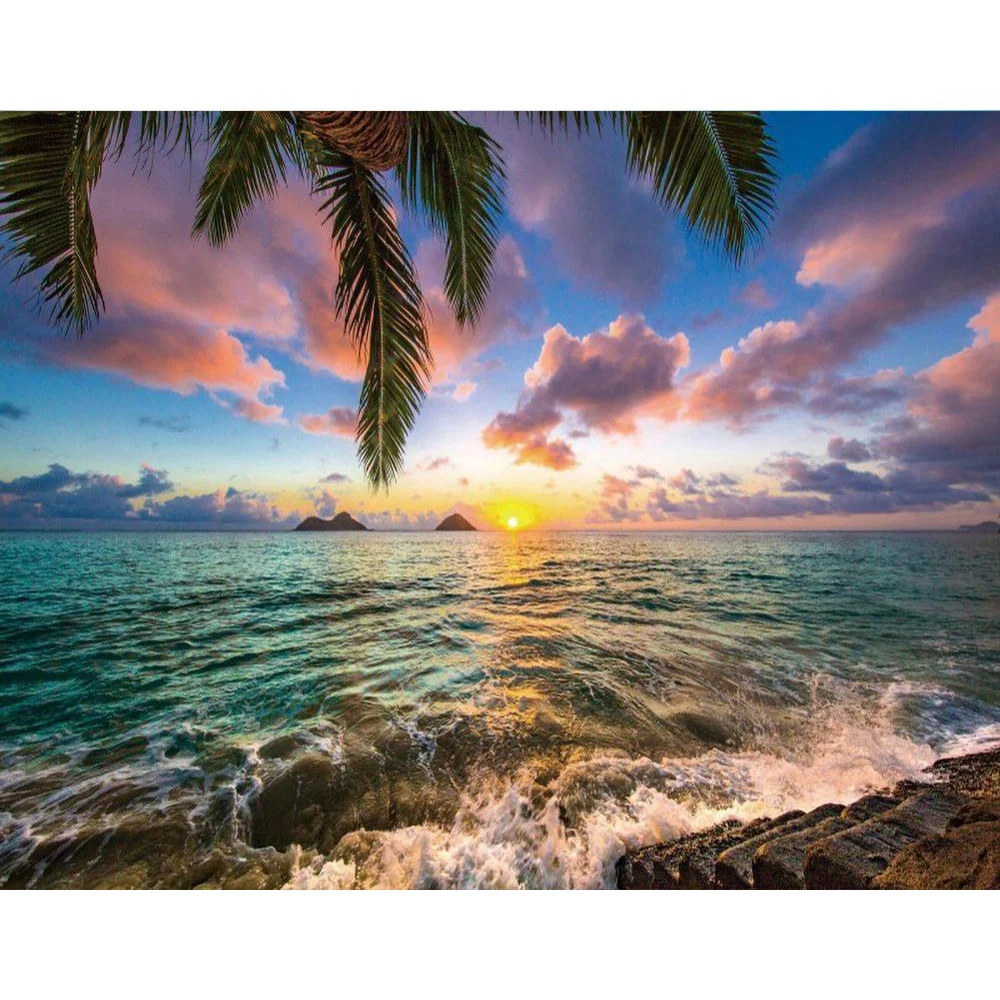 Ktonsdci фотографический фон для фотографии тропические пальмы дерево морские волны пляж Закат Природный Живописный фон для фотостудии