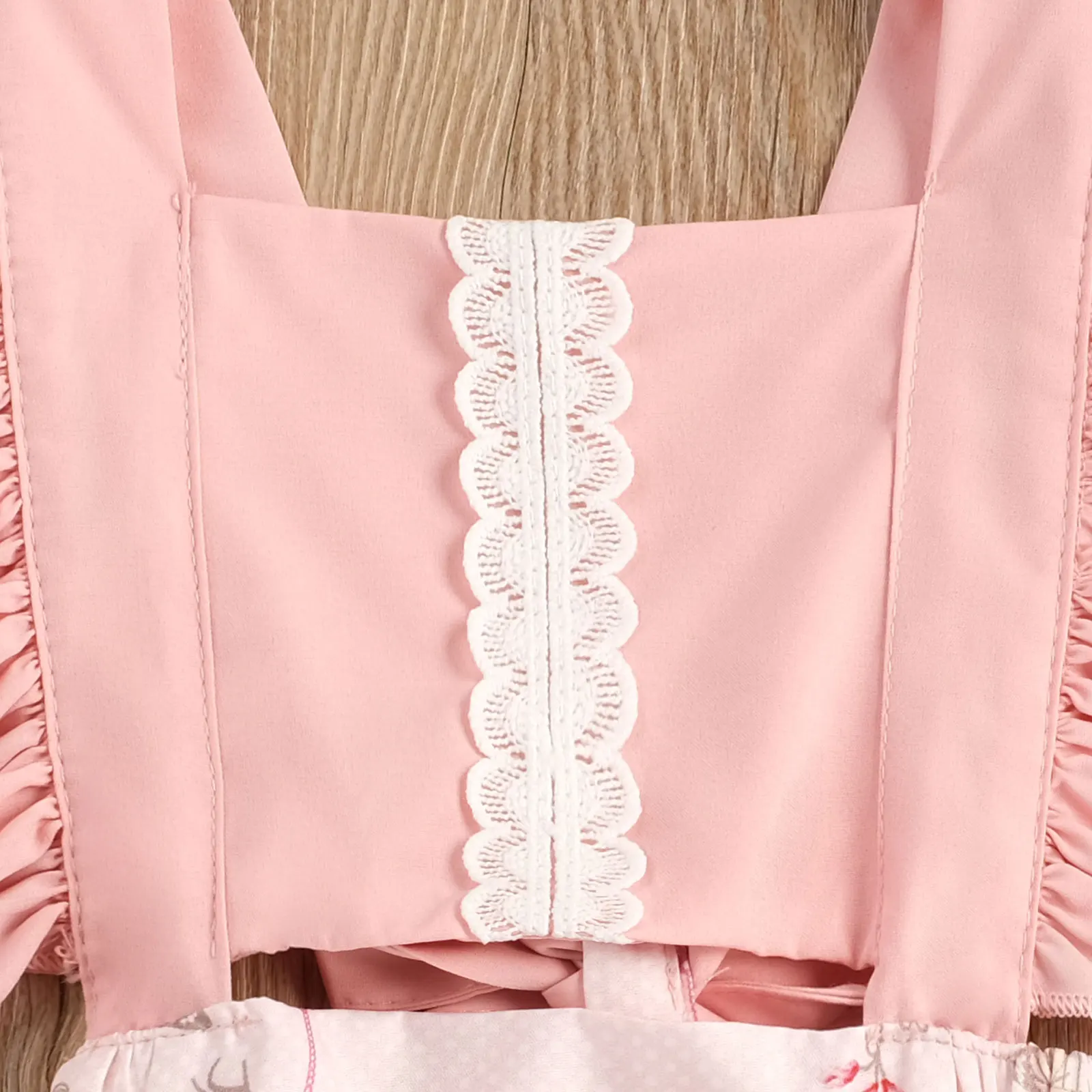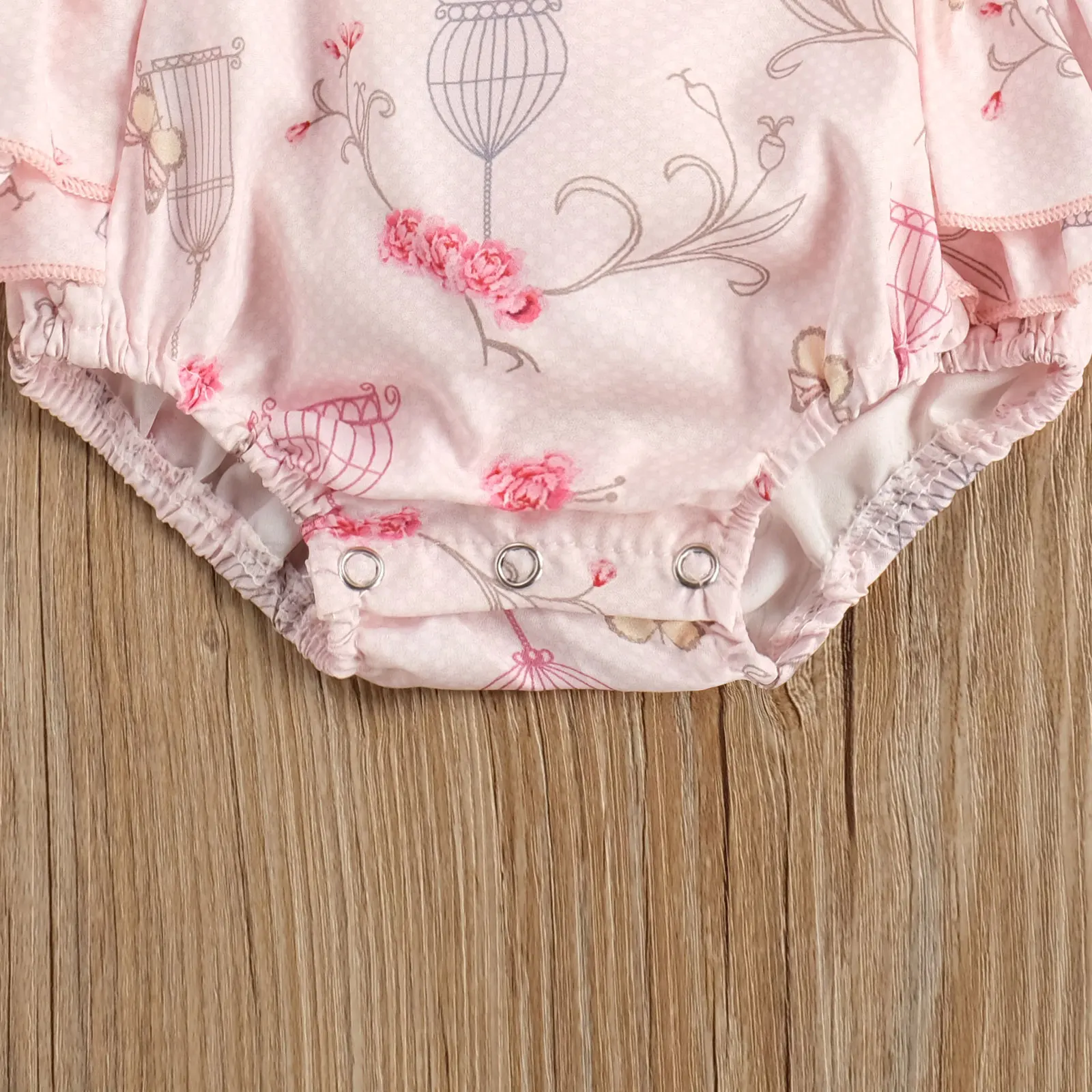 Специальный дизайн; Комбинезон с рукавами-крылышками и пуговицами на промежности; Цветочный принт
