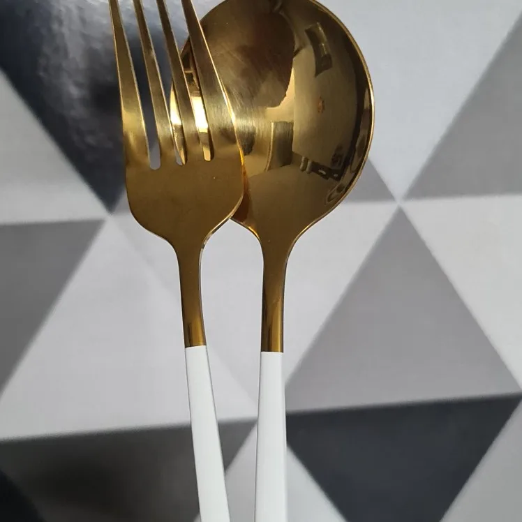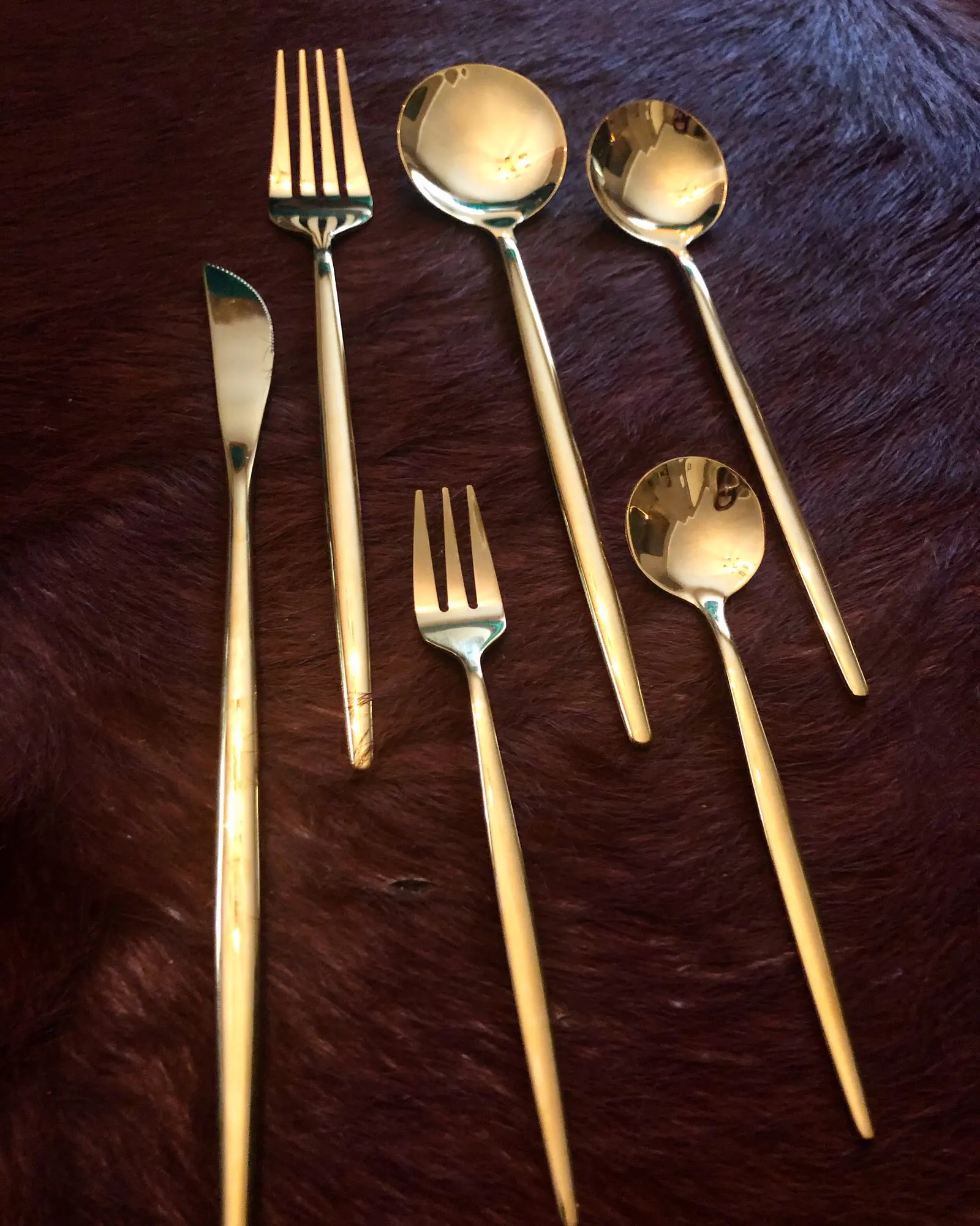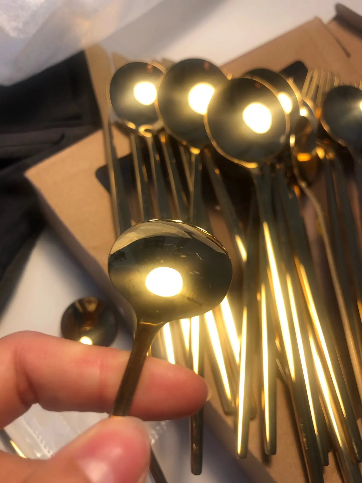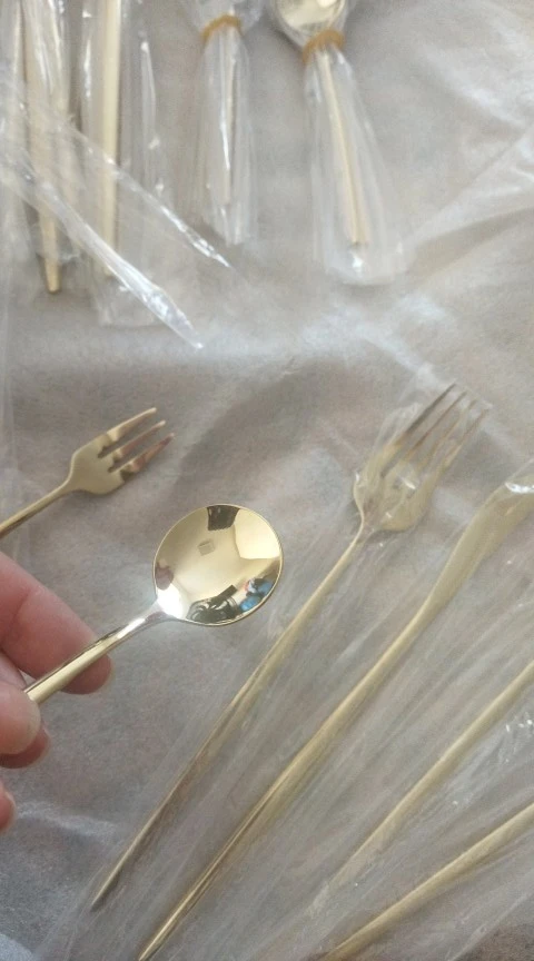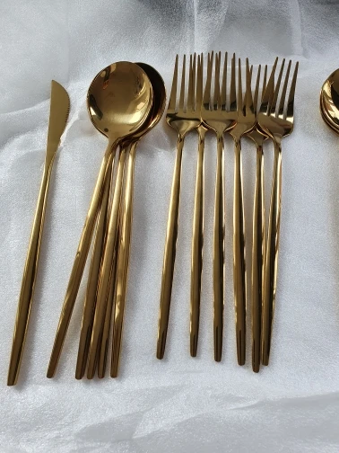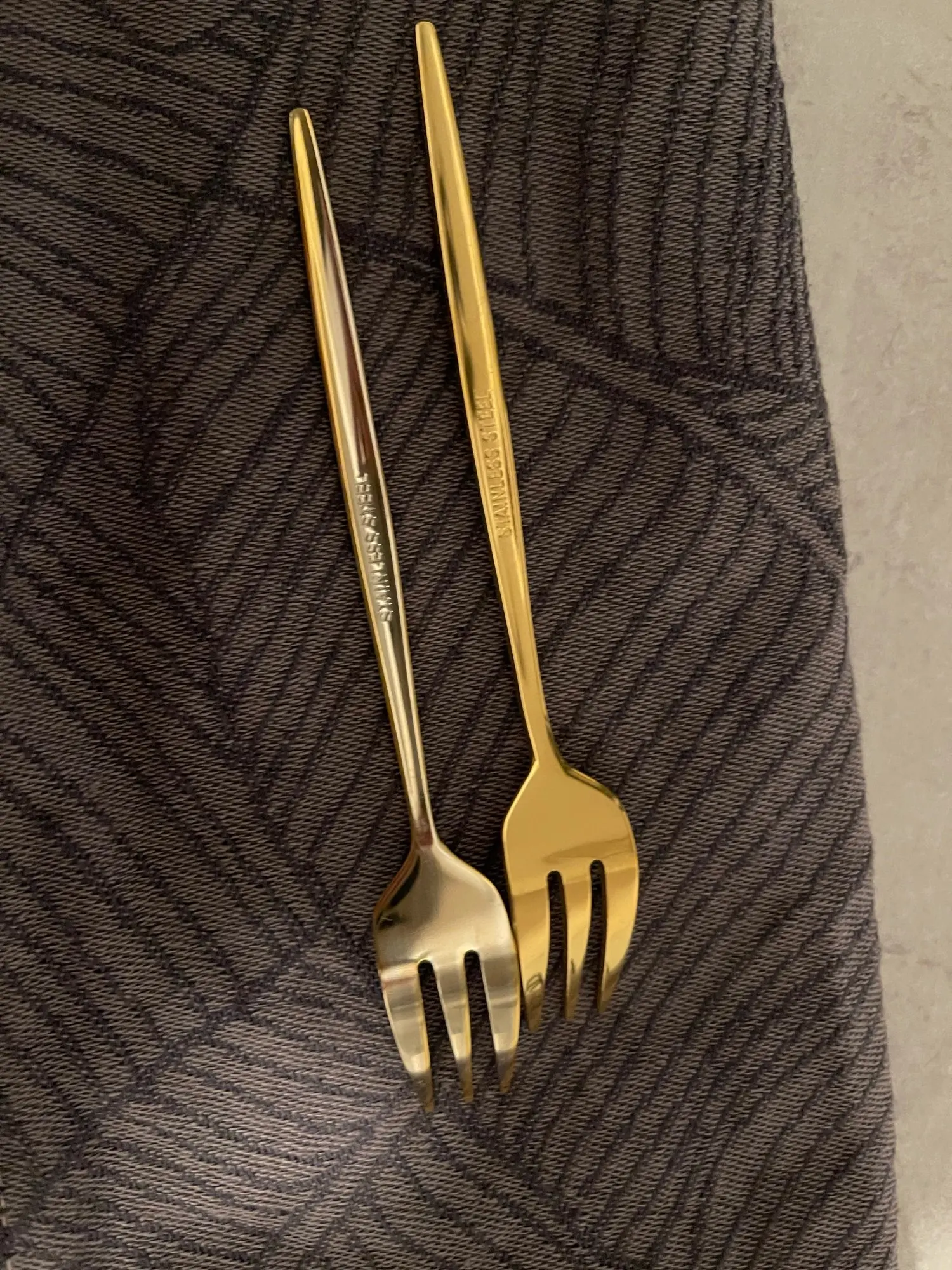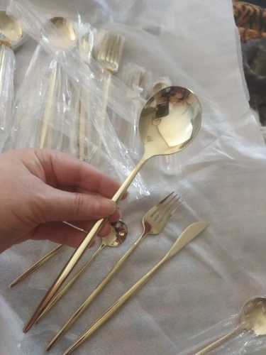 Muito lindo e design ultra moderno. Ainda não os coloquei em uso, mas acredito que deve ser lavado com cuidado. Têm muito brilho! Lindos! Escolhi a cor Champagne, pois não queria algo muitoooo dourado. Queria um dourado sutil e adorei minha escolha! As fotos não fazem jus à beleza dos talheres. ❤️