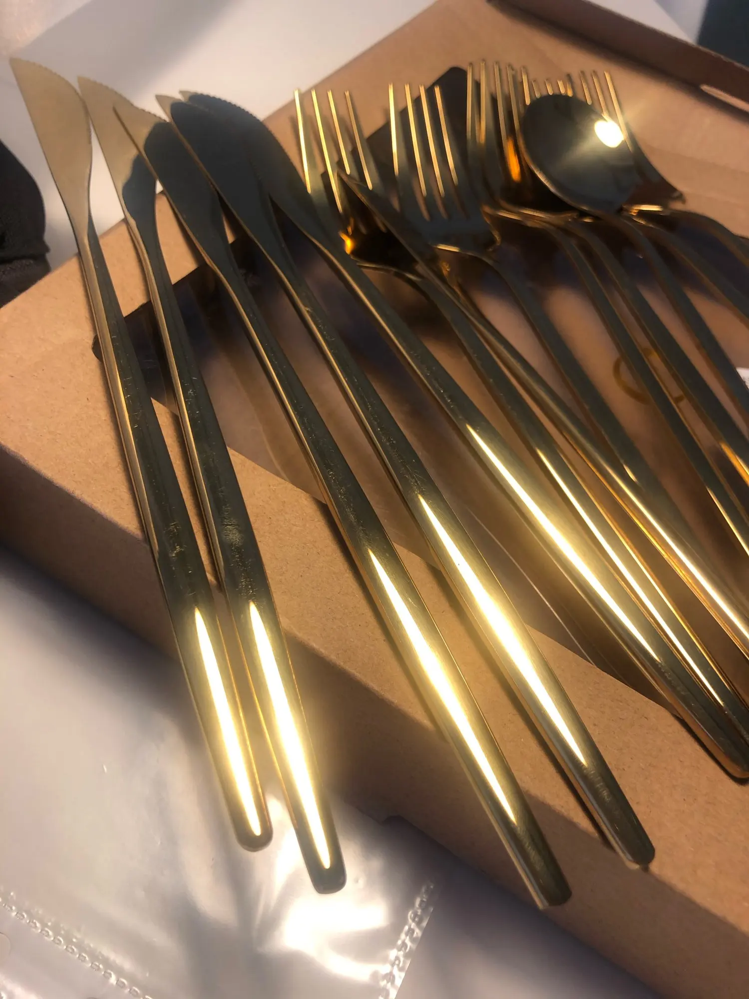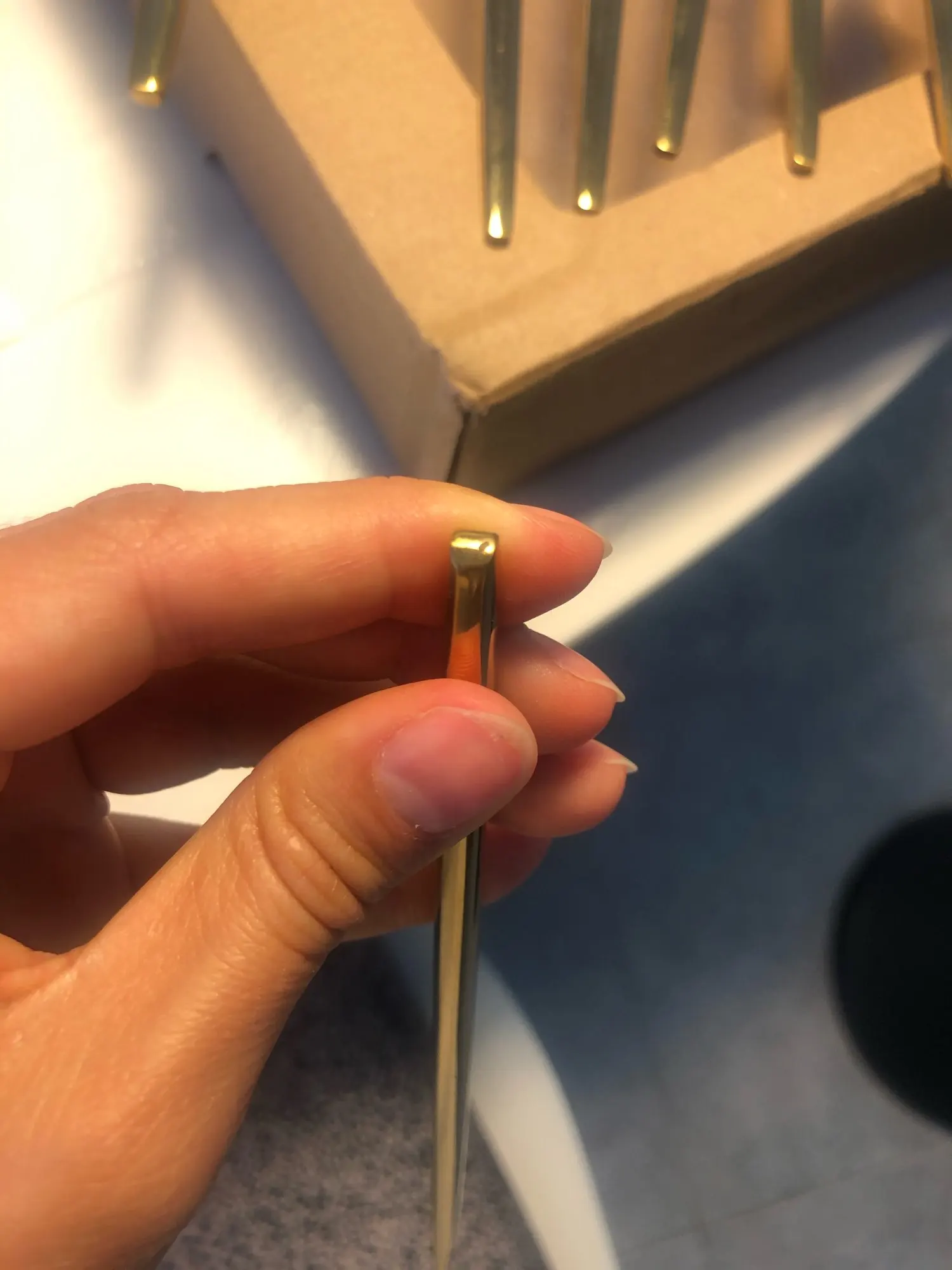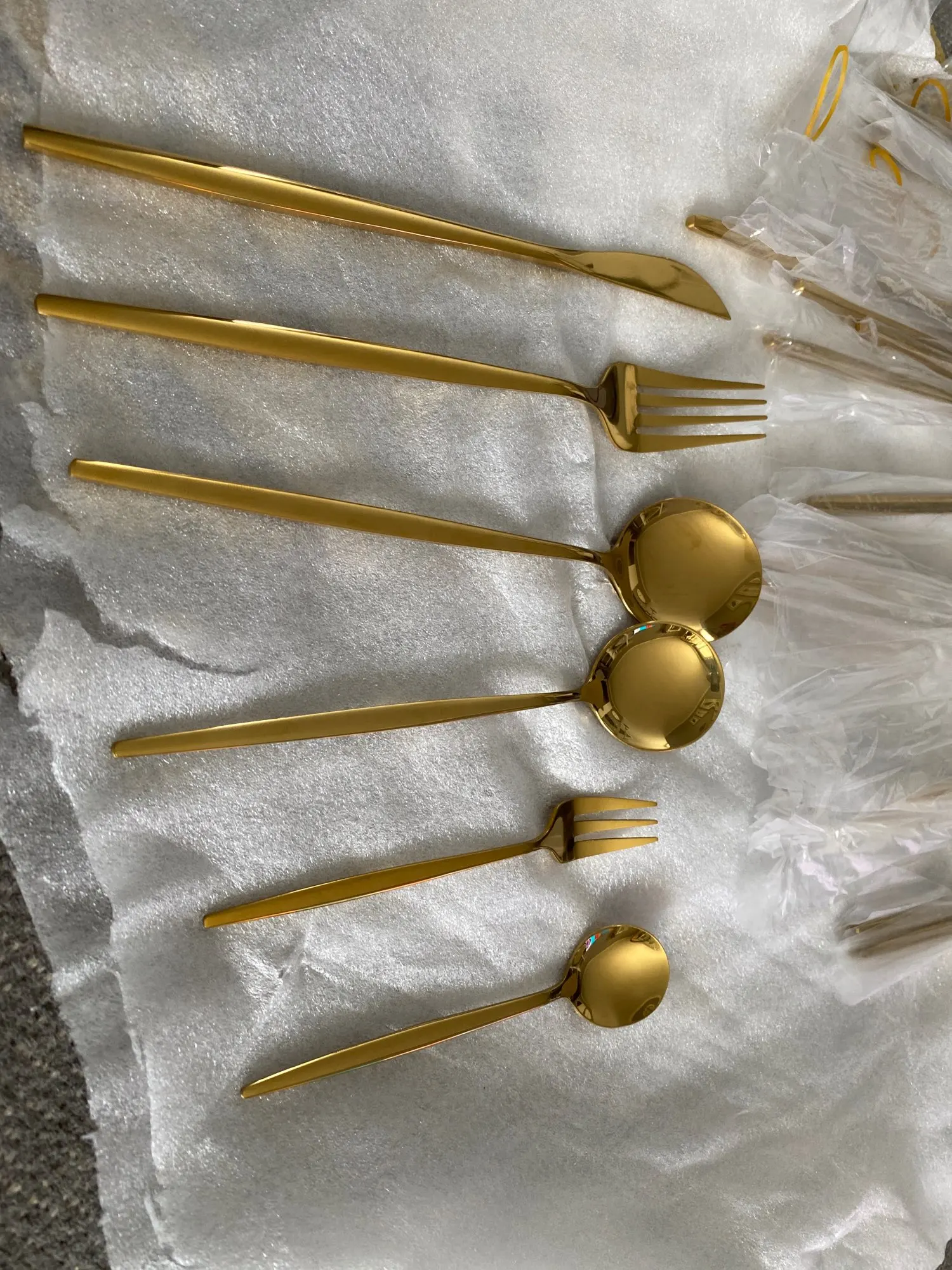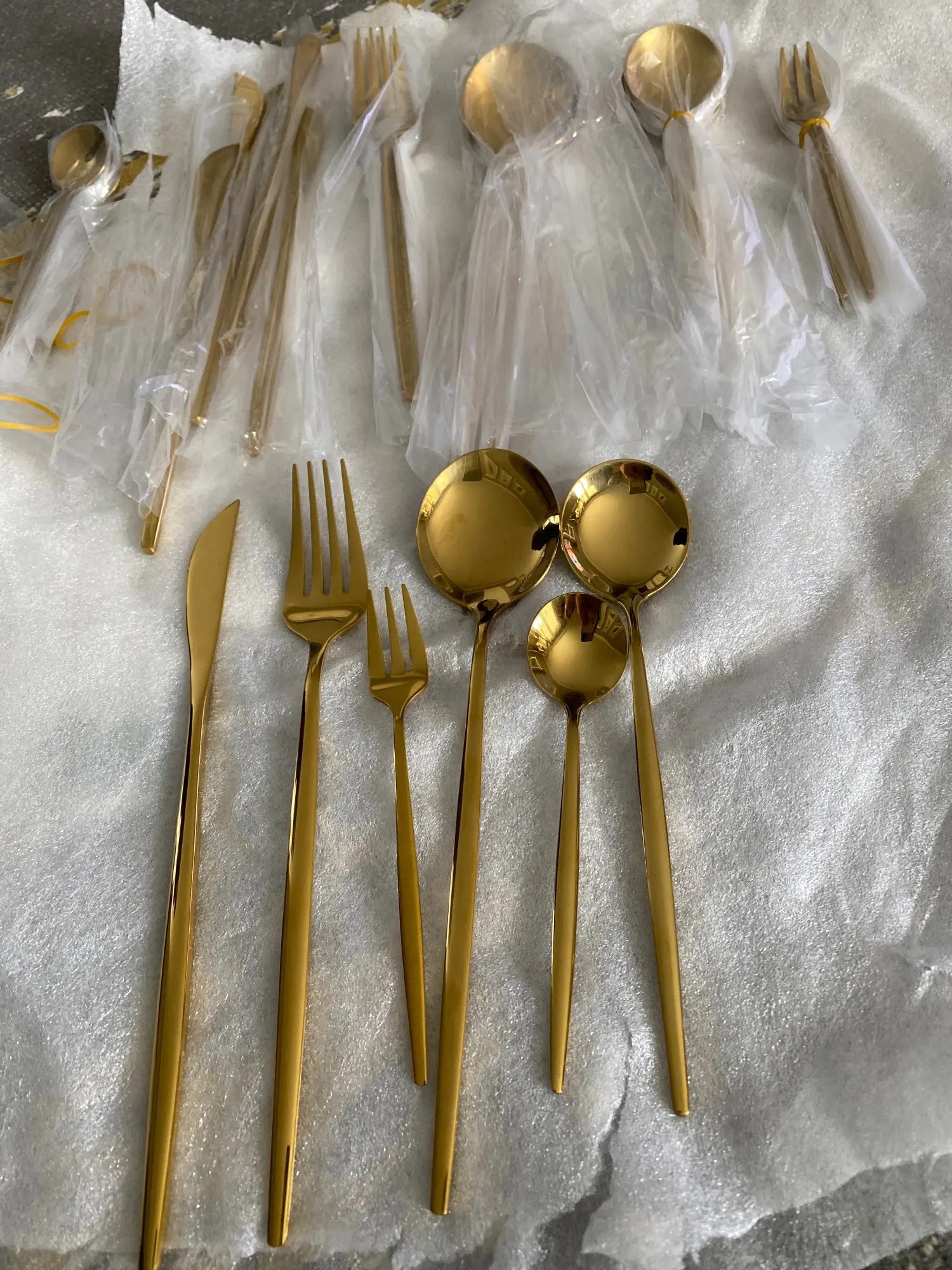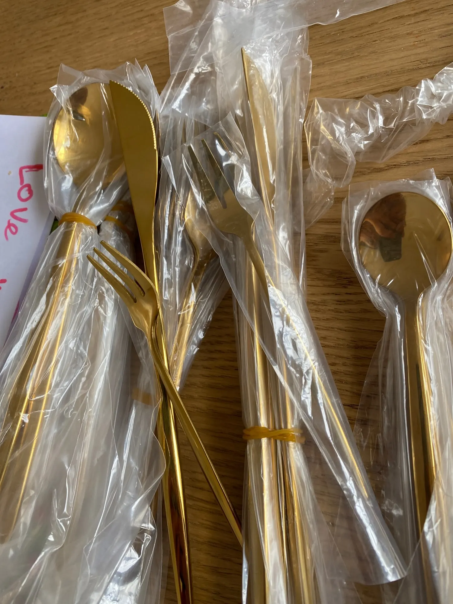 Muito lindo e design ultra moderno. Ainda não os coloquei em uso, mas acredito que deve ser lavado com cuidado. Têm muito brilho! Lindos! Escolhi a cor Champagne, pois não queria algo muitoooo dourado. Queria um dourado sutil e adorei minha escolha! As fotos não fazem jus à beleza dos talheres. ❤️