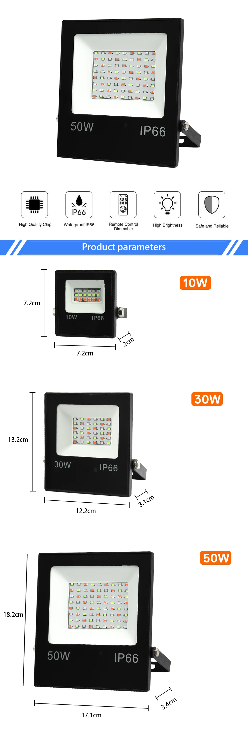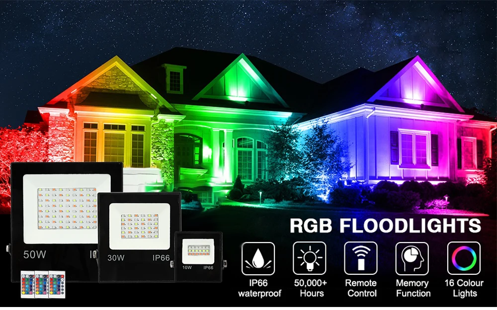 RGB-прожектор дистанционного управления, 220 В переменного тока, 10 Вт, 30 Вт, 50 Вт, водонепроницаемый, IP66, 16 цветов