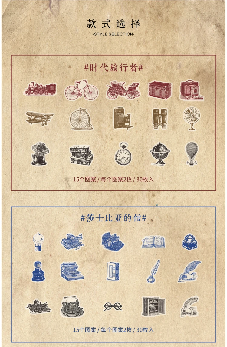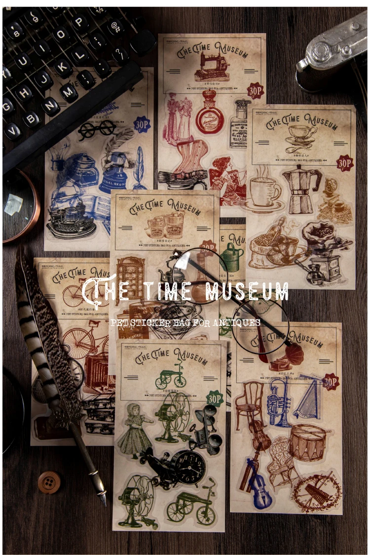 30 шт.пакет Винтаж время музея серии ПЭТ Стикеры посылка DIY Дневник украшения Стикеры альбом Скрапбукинг