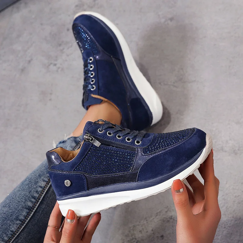 Женские кроссовки стразы на молнии, блестящие кроссовки из искусств...