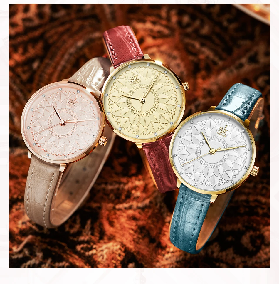 Женские часы Shengke с цветочным циферблатом, японский кварцевый ме...