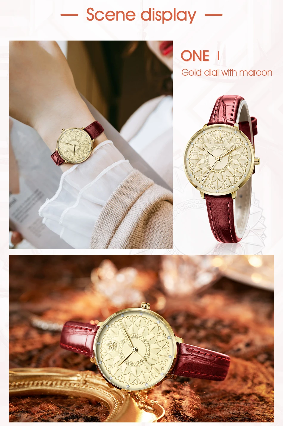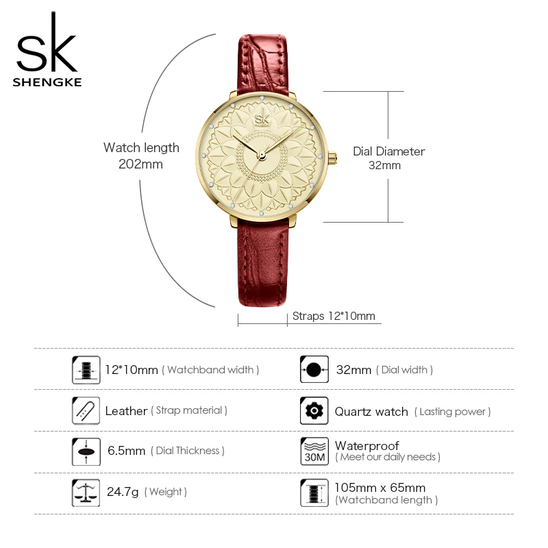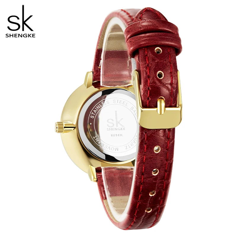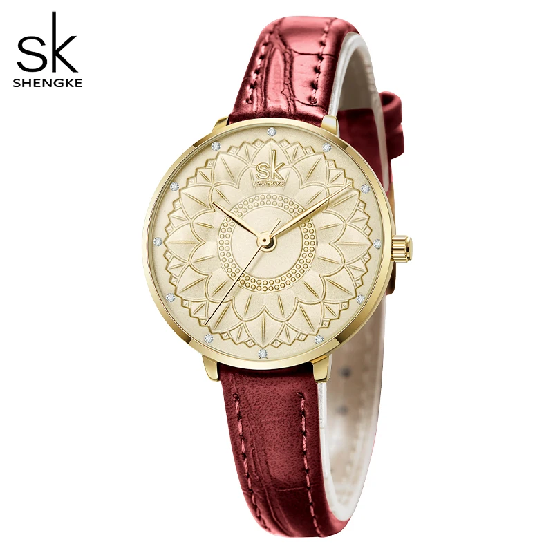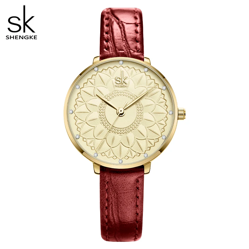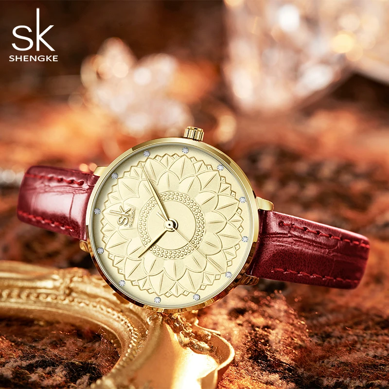 Женские кварцевые часы Shengke, с романтичным красным ремешком и цветочным циферблатом, в японском стиле