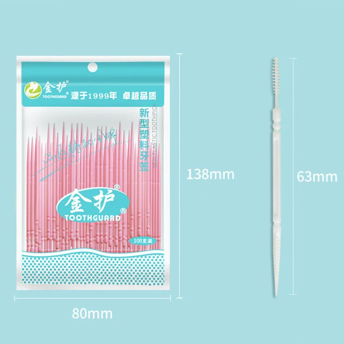 Двухсторонняя зубная нить, пластиковая щетка для ухода за полостью рта, 100 шт.