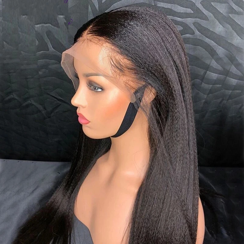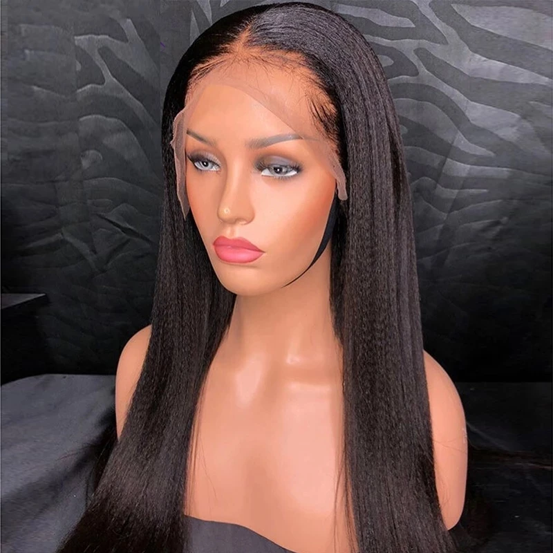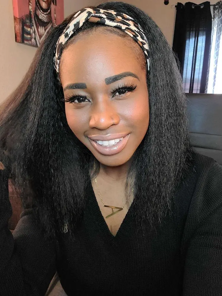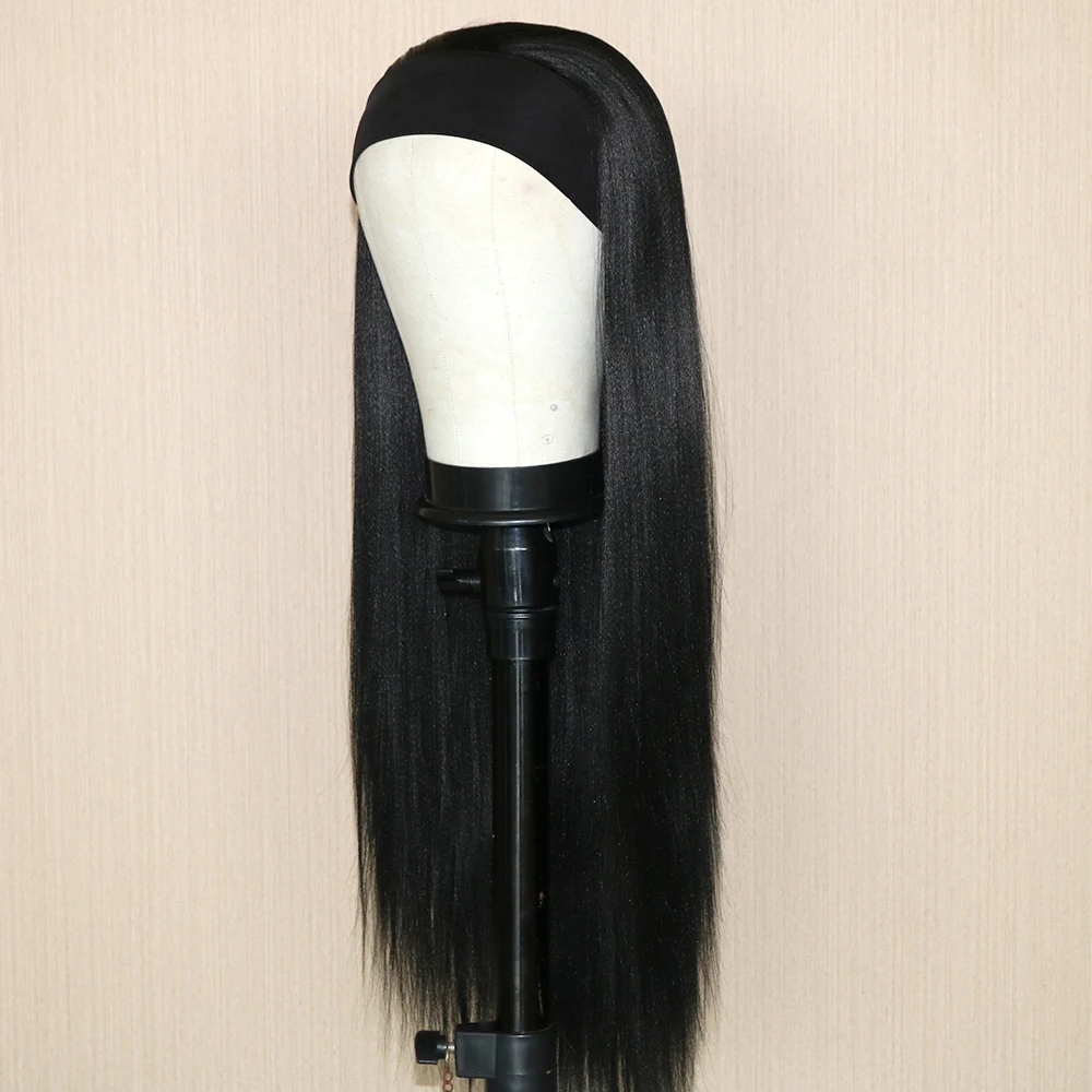 Парик для чернокожих женщин Light Yaki, прямые волосы из натурального синтетического волокна, с повязкой на голову
