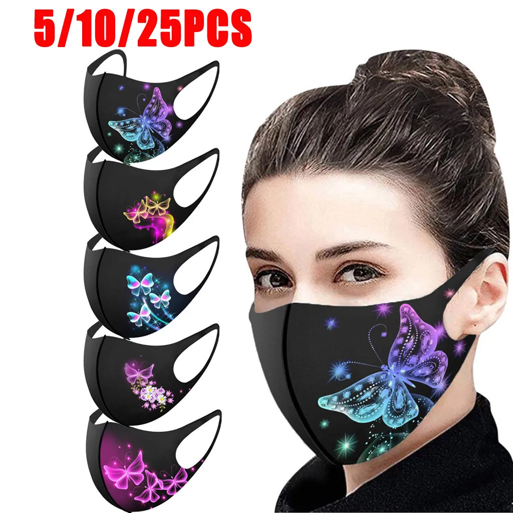 5 шт., многоразовая моющаяся черная маска для лица с принтом бабочки