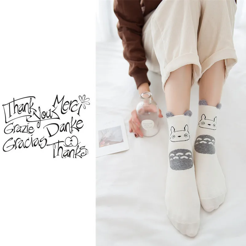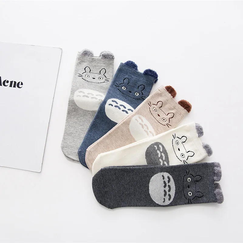 Носки женские, с мультяшными ушками, хлопковые милые носки перьев, 5 пар в наборе