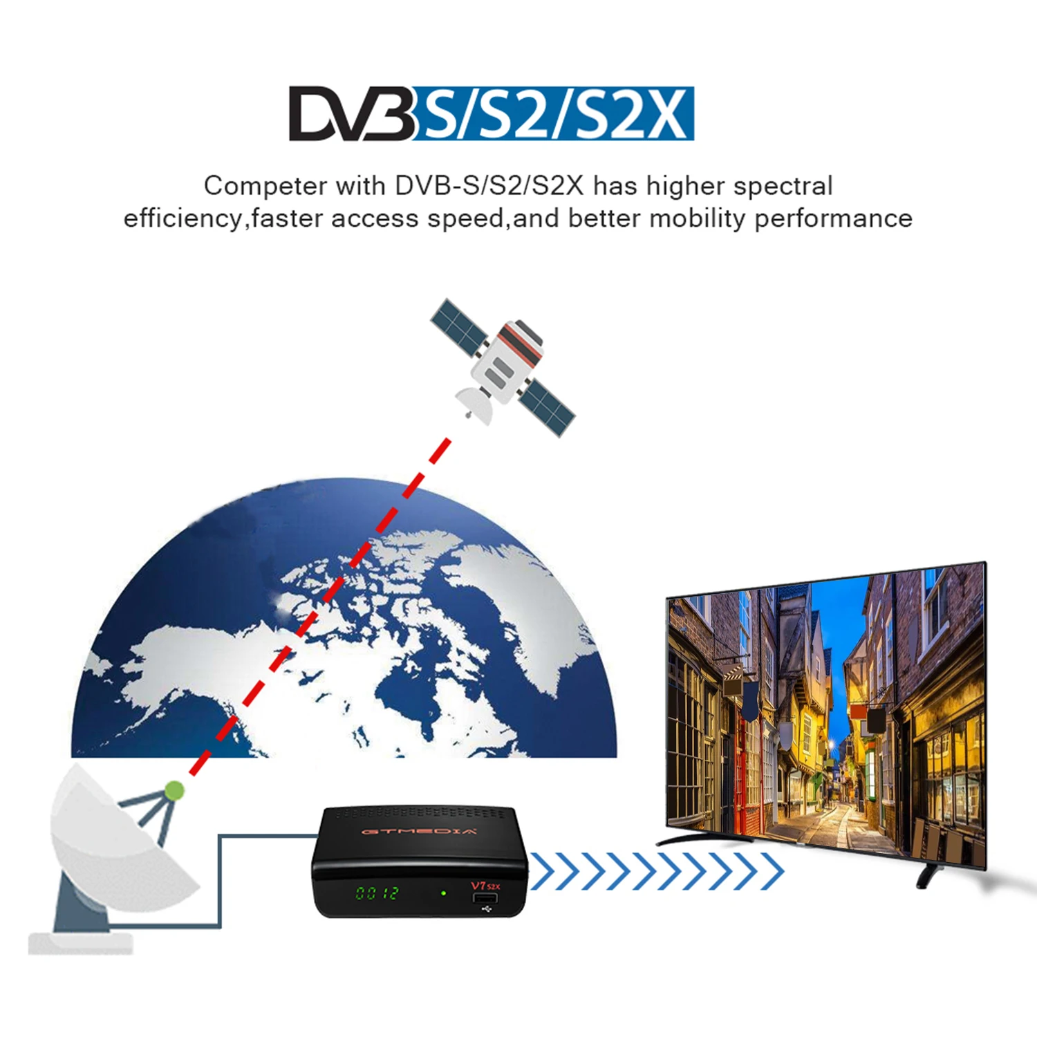 V7S2X-это новый спутниковый ресивер серии V7, разработанный GTMEDIA в 2020 году. Как следующее поколение V7S HD, он не только имеет все функции V7S HD, но также имеет более мощную производительность и более плавный просмотр. V7S2X поддерживает новейшие стандартные DVB-S2X, скорость декодирования увеличивается более чем на 51%. Это ваш лучший выбор для просмотра спутниковых программ