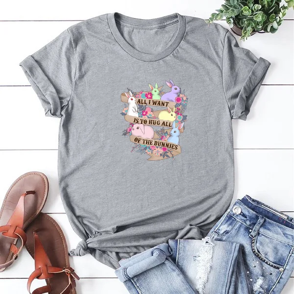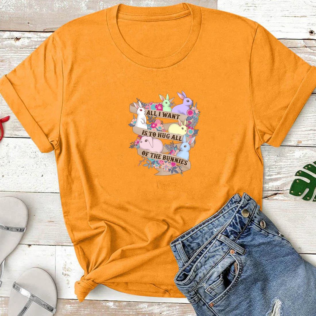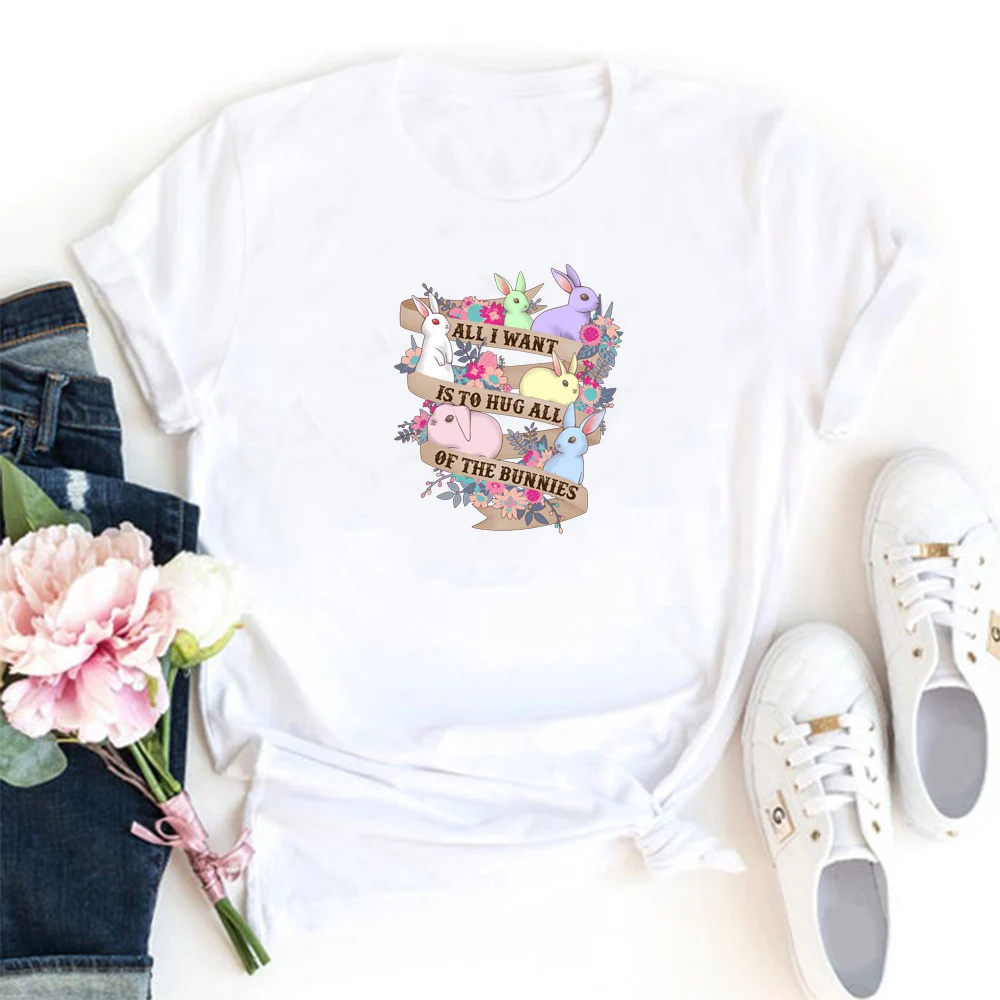 Все, что я хочу, это обнимать всех кроликов, женская футболка с коротким рукавом, женские хлопковые футболки с милым рисунком кролика, женская футболка