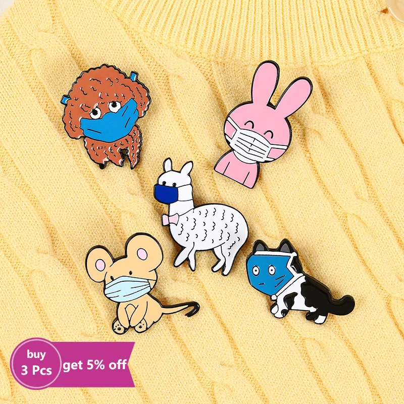 Броши с эмалью в виде маски, кролика, мыши, собаки, кошки, альпаки