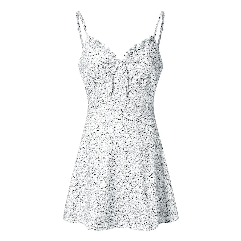 Женское Платье на бретелях, Летнее Платье-мини с цветочным принтом,...