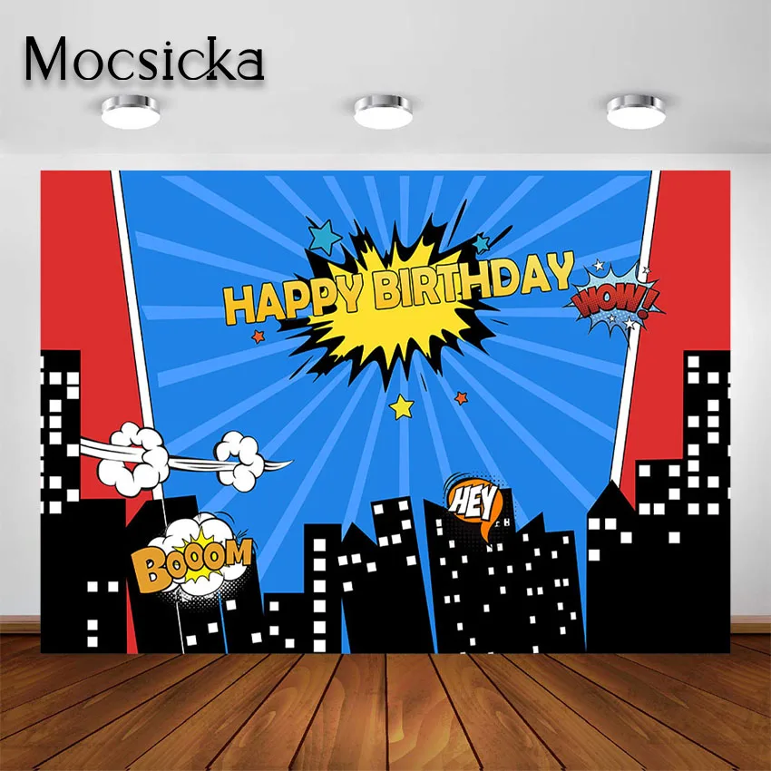 Mocsicka Super hero города со зданиями Super Hero городской пейзаж ночного детская День рождения украшения фон для фотосессии
