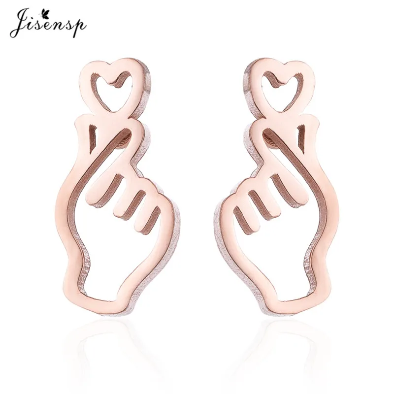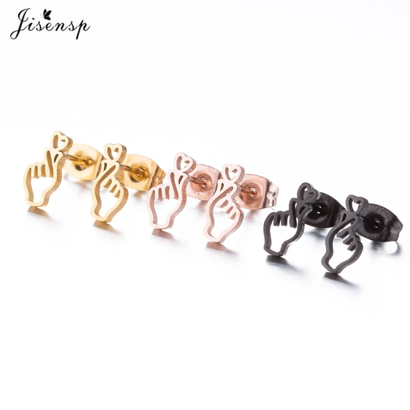 Серьги-гвоздики женские из нержавеющей стали, черные, в форме сердца, Луны, звезды, Креста