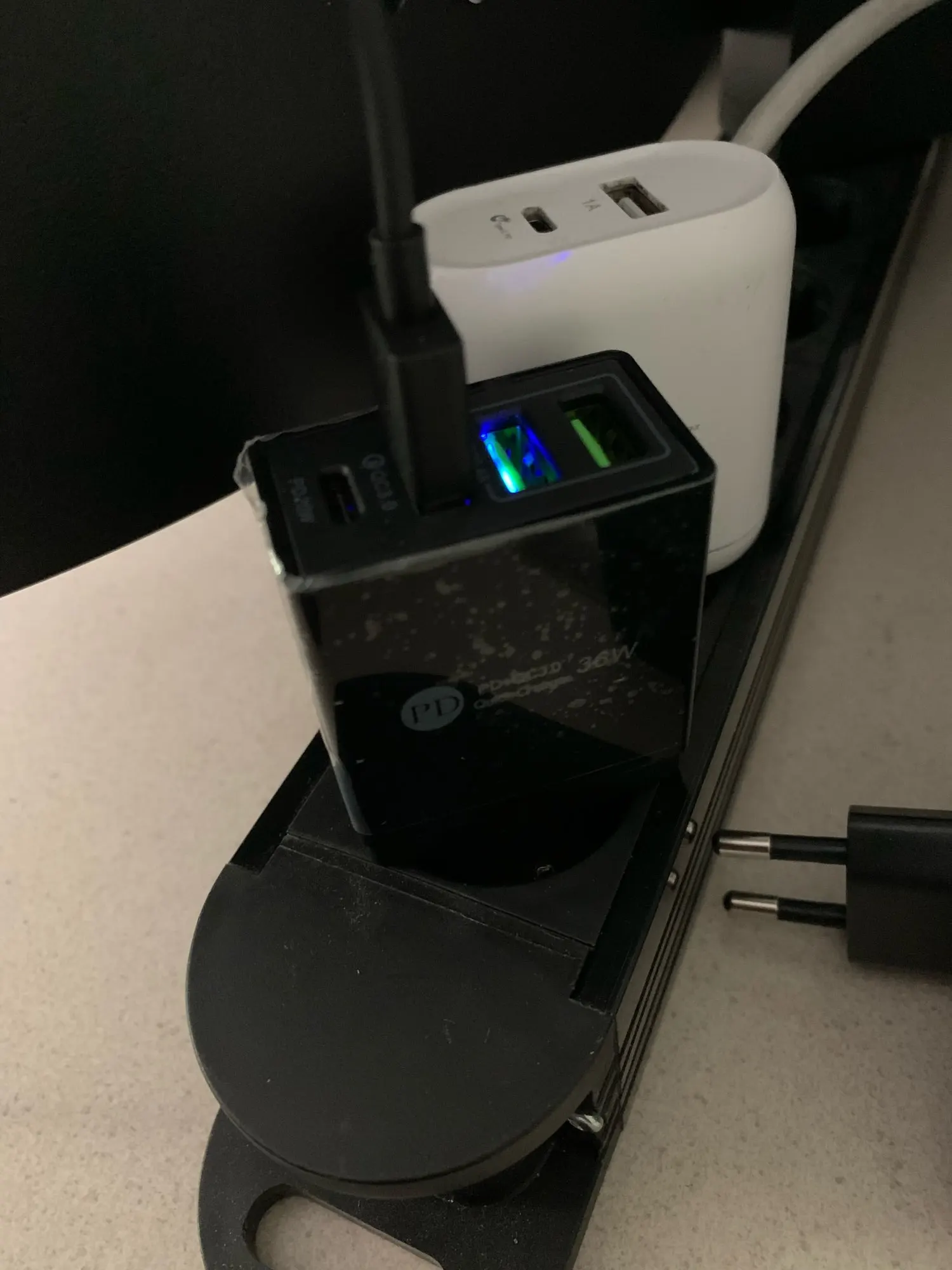 Оранжевый вход и вход тип С выдали быструю зарядку, остальные два мне не сильно интересны. Пованивает сгоревшей проводкой, посмотрим на сколько хватит.