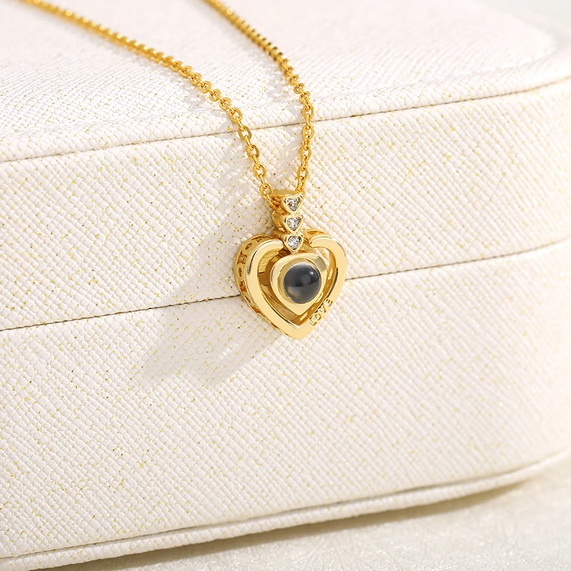 Ожерелье женское из розового золота, с проекционным кулоном Я люблю...