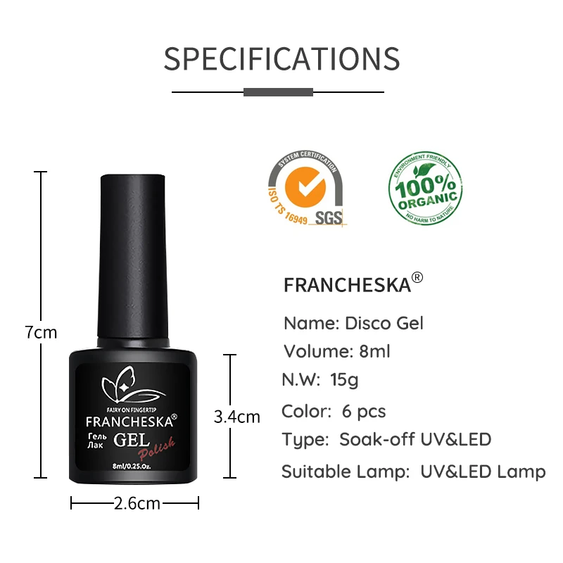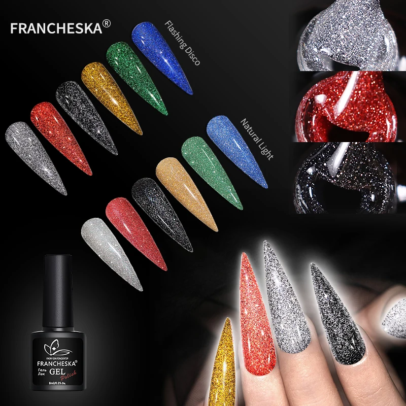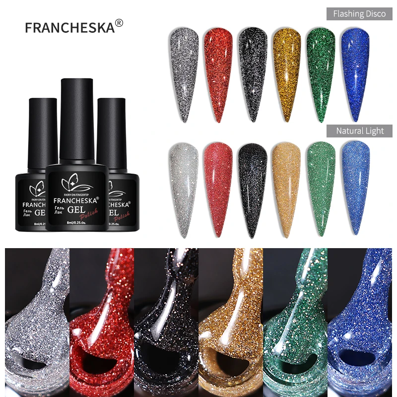 FRANCHESKA 8 мл Гель-лак для ногтей, УФ-Лаки лак для ногтей Nail Art Блеск вспышки Клей для ногтей фототерапии блеск диско гелевого маникюра TSLM2