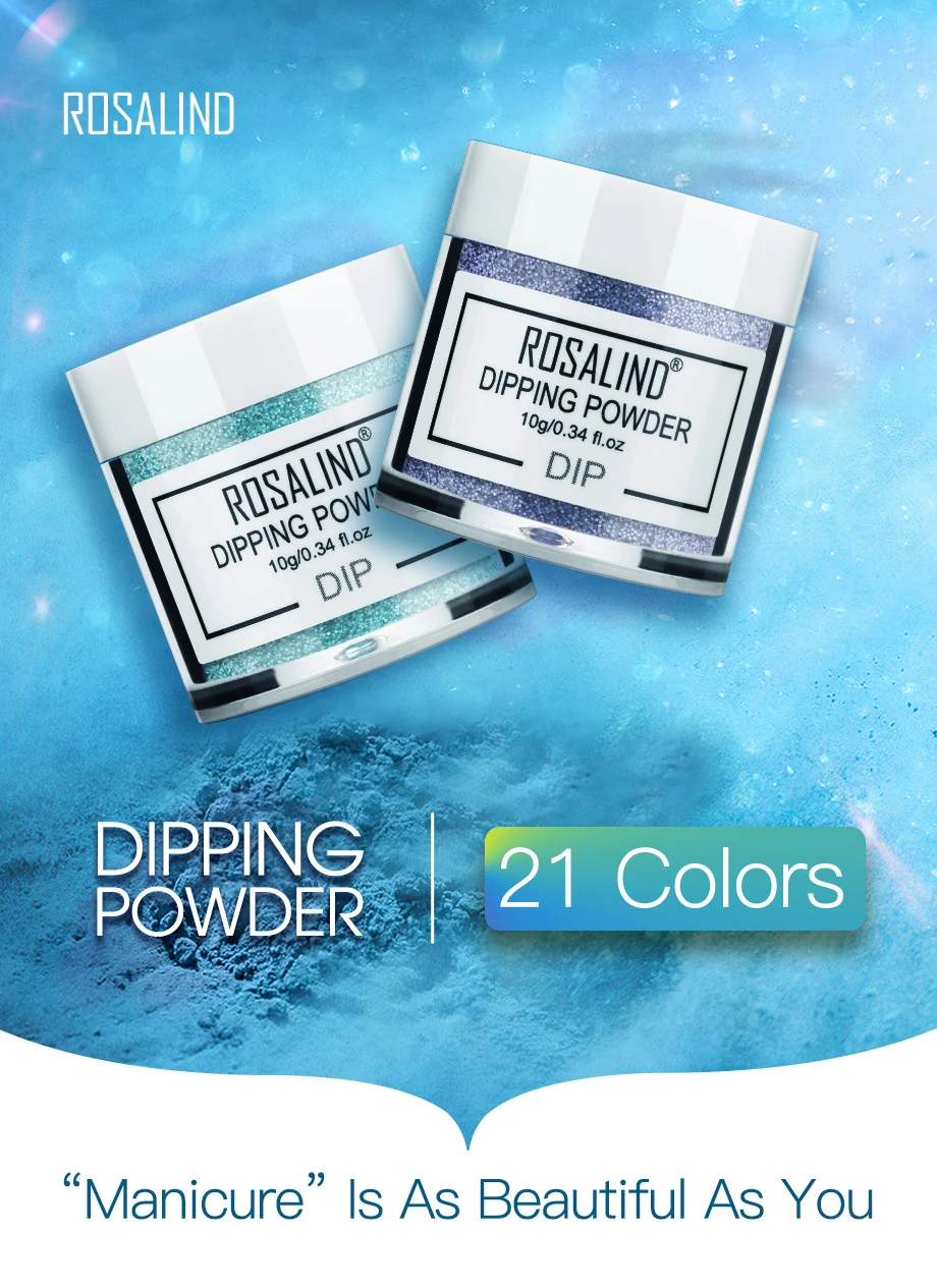 ROSALIND Блестящий Порошок для погружения ногтей, пылезащитные украшения, полимерный пигмент, дизайн ногтей, аксессуары, температурный порошок, нужен Базовый Топ